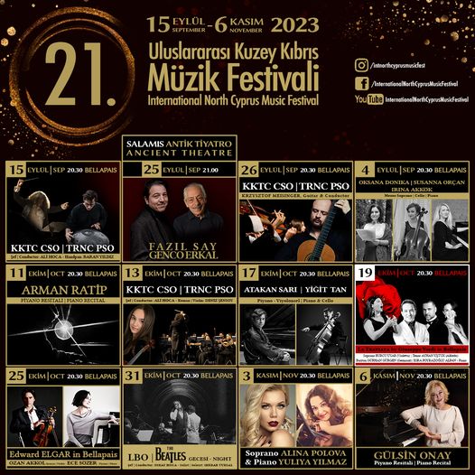 Lefkoşa, 25 Ağustos 23 (TAK): Kuzey Kıbrıs Müzik Derneği tarafından düzenlenen ve bu yıl 21’incisi yapılacak Uluslararası Kuzey Kıbrıs Müzik Festivali 15 Eylül’de başlıyor.