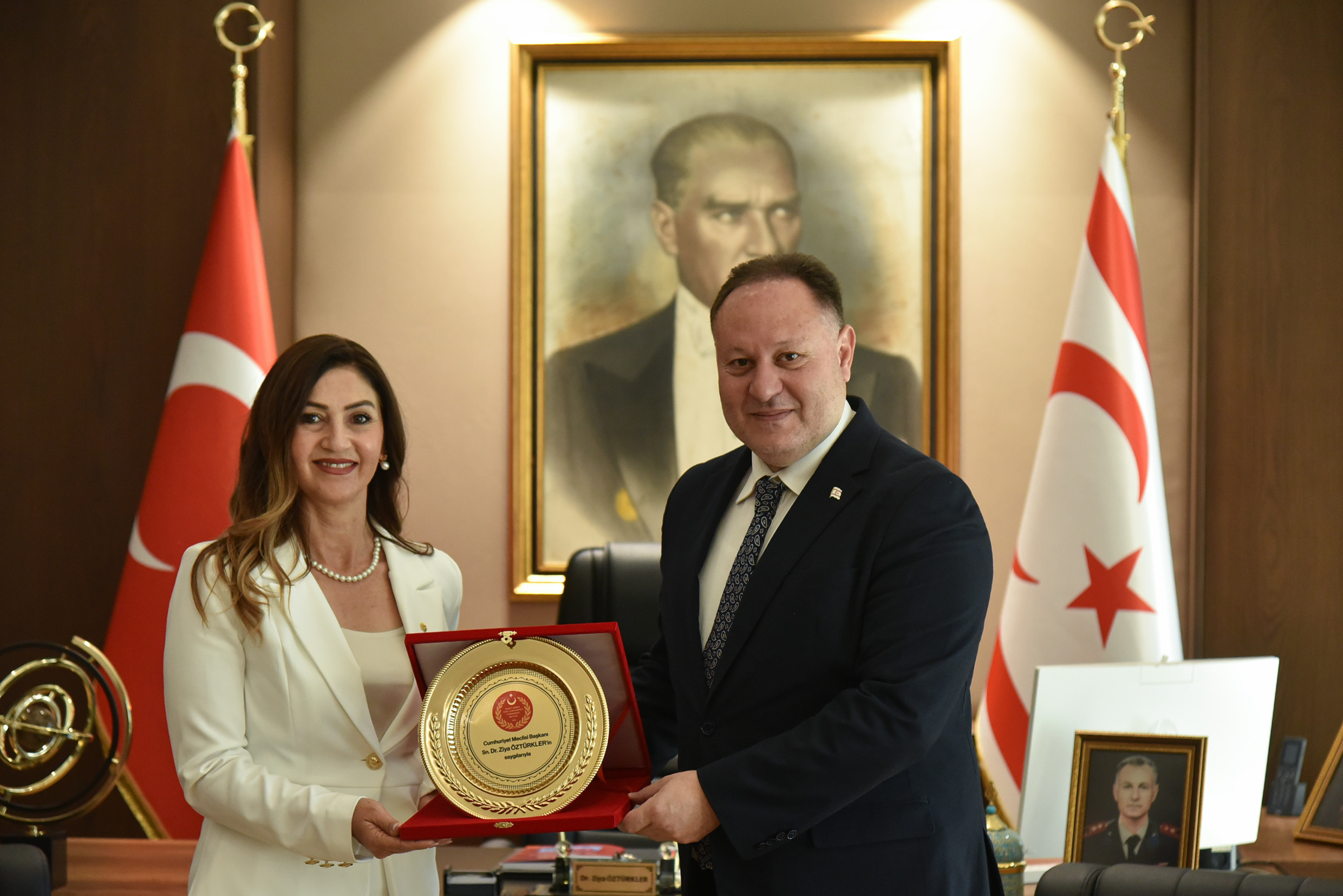 Lefkoşa, 20 Nisan 26 (TAK): Cumhuriyet Meclisi Başkanı Ziya Öztürkler, 23 Nisan Ulusal Egemenlik ve Çocuk Bayramı nedeniyle  Şht. Yalçın İlkokulu öğrenci ve öğretmenlerini kabul ederek, makamını temsili olarak 5. sınıf öğrencisi Raya Dalay’a devretti.