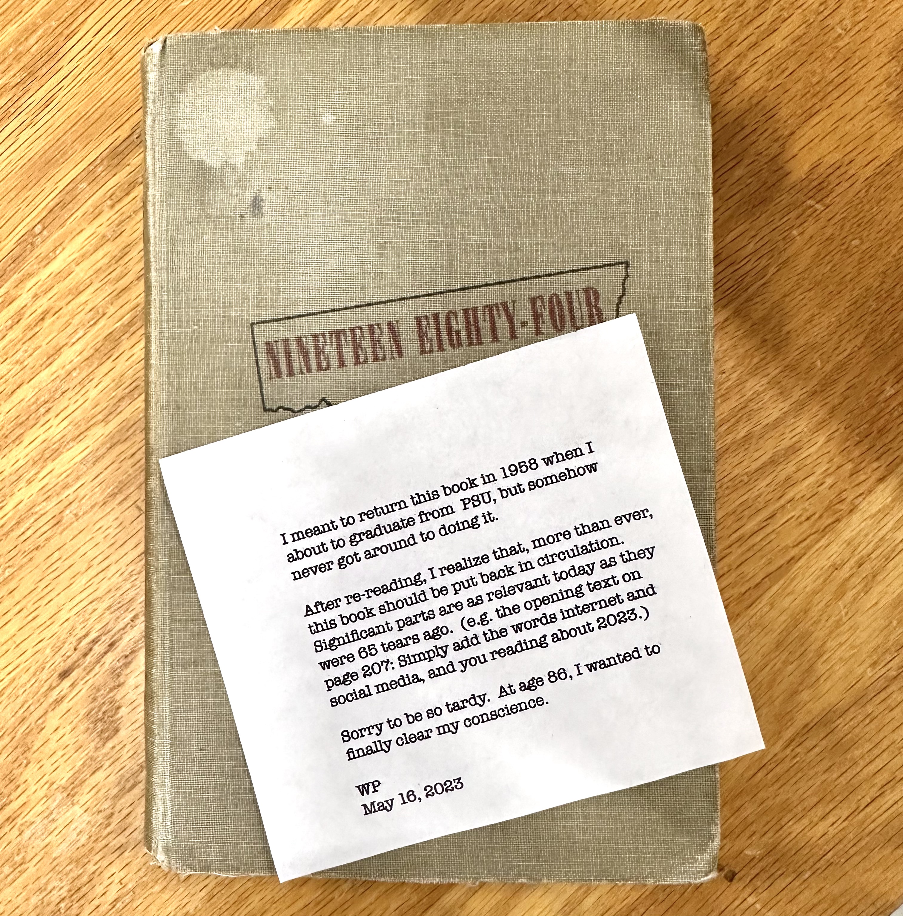 Ankara, 16 Haziran 23 (TAK): ABD'nin Oregon eyaletinde, 86 yaşındaki bir adam, kütüphaneden ödünç aldığı George Orwell'ın 1984 romanının ilk baskısını, 65 yıl sonra iade etti.