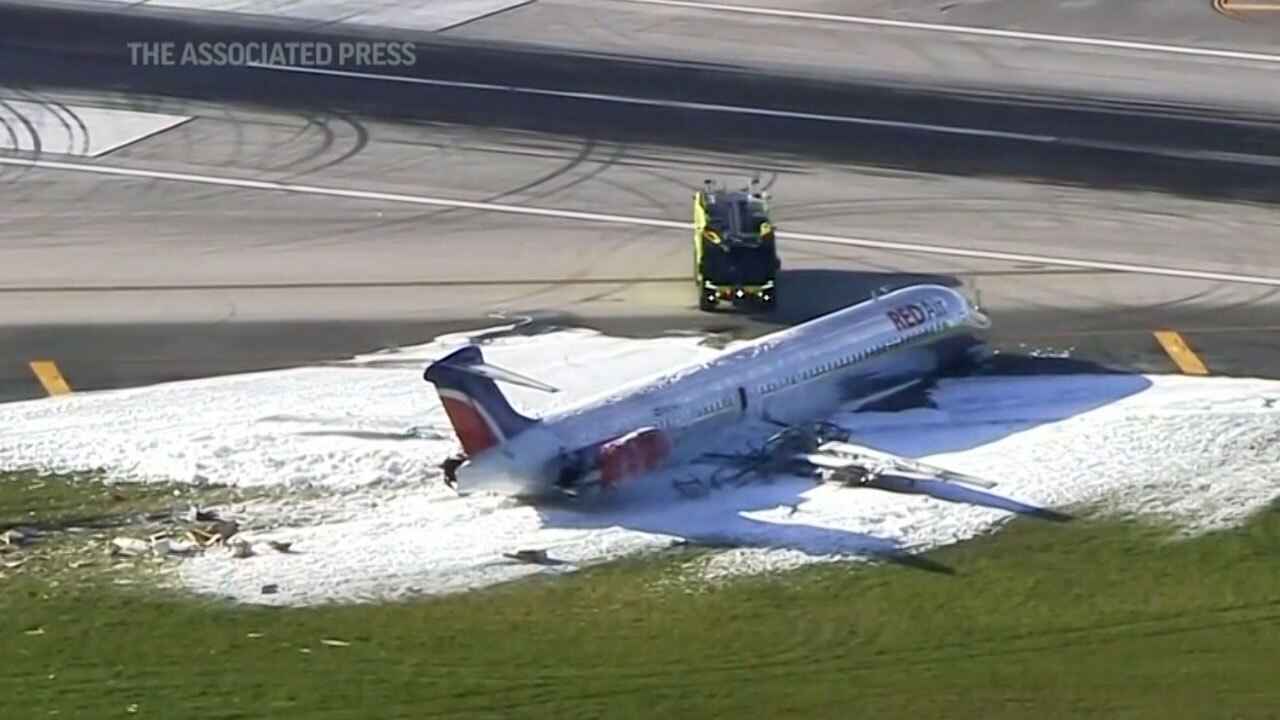 ABD'de iniş takımları bozulan yolcu uçağı pistte alev aldı