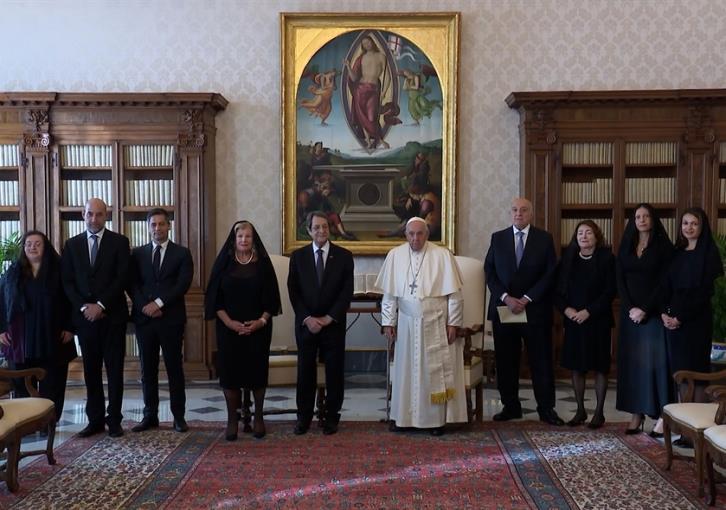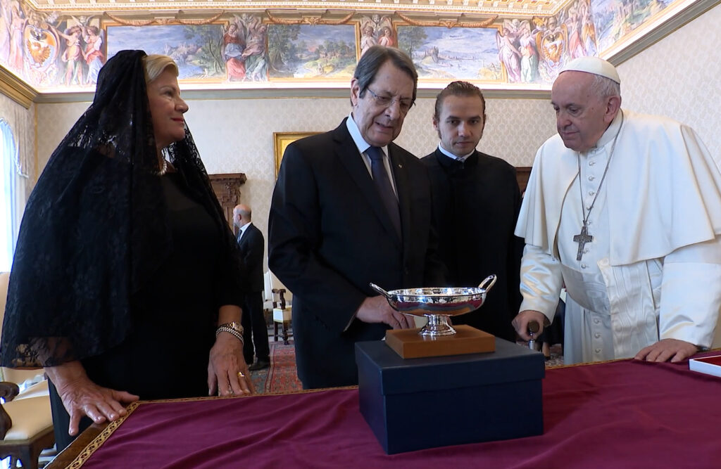 Lefkoşa, 24 Ekim 22 (TAK): Rum Yönetimi Başkanı Nikos Anastasiadis, resmi ziyaret için gittiği Vatikan’da Katoliklerin ruhani lideri Papa Francis ile bir araya geldi.