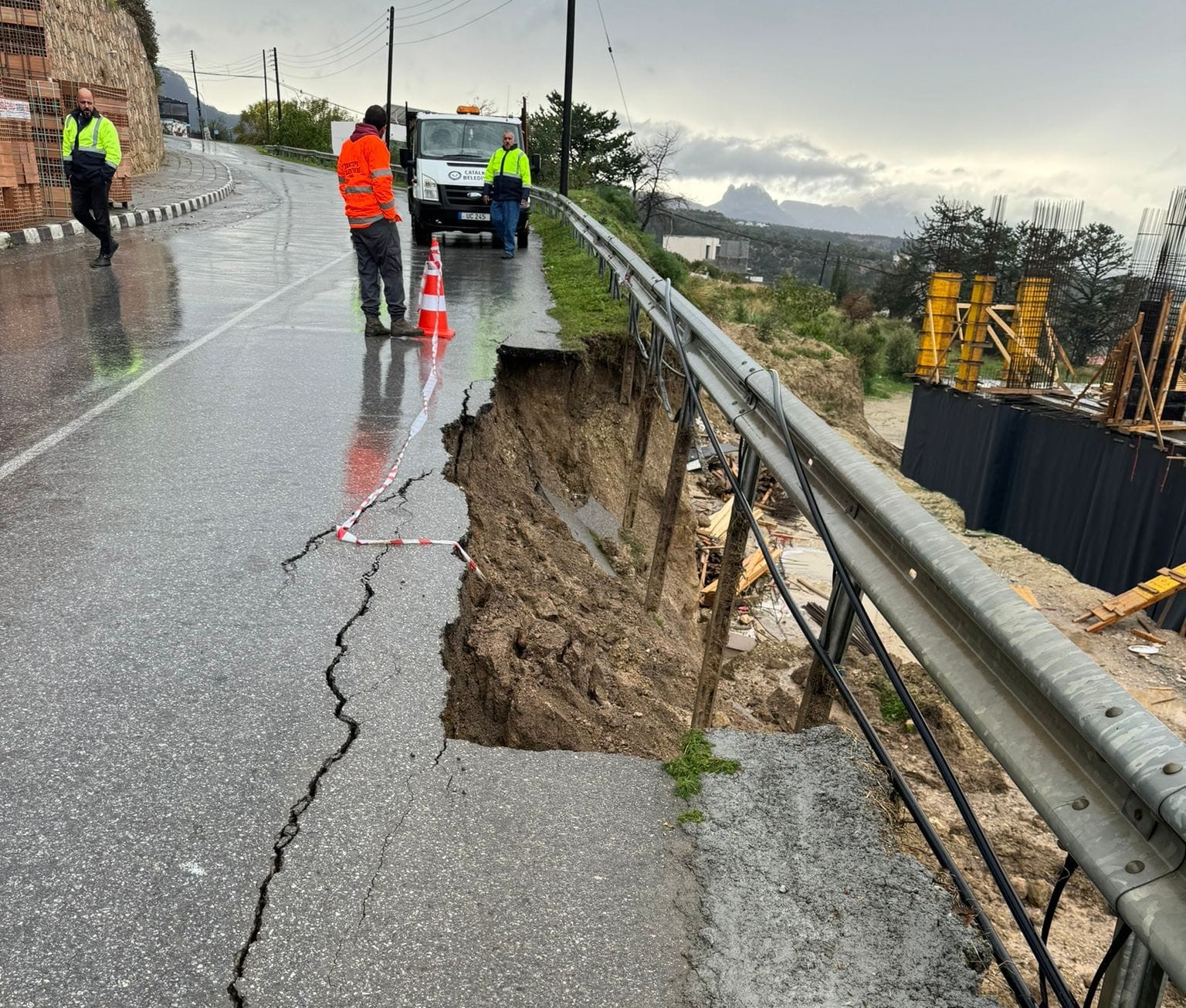 Lefkoşa, 30 Ocak 24 (TAK): Aşırı yağışlar, Esentepe’de yolda çökmelere yol açtı.