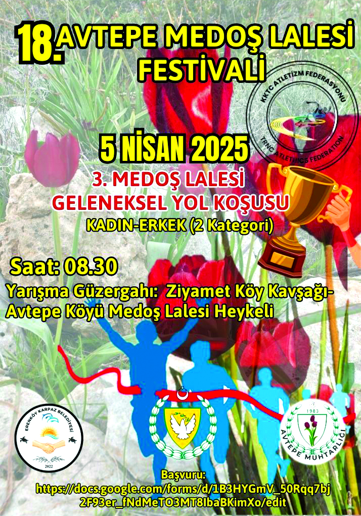 Lefkoşa, 2 Nisan 25 (TAK): Erenköy-Karpaz Belediyesi ile Avtepe Muhtarlığı tarafından düzenlenen 18’inci Avtepe Medoş Lalesi Festivali, 5 Nisan Cumartesi günü yapılacak.