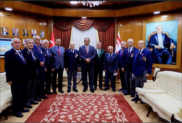 Lefkoşa, 24 Mart 22 (TAK): Başbakan Faiz Sucuoğlu, Türkiye Muharip Gaziler Derneği Genel Başkanı Beyazıt Yumuk ile Kıbrıs Barış Hareketi ve Muharebe Alanları Gazilerini kabul etti.