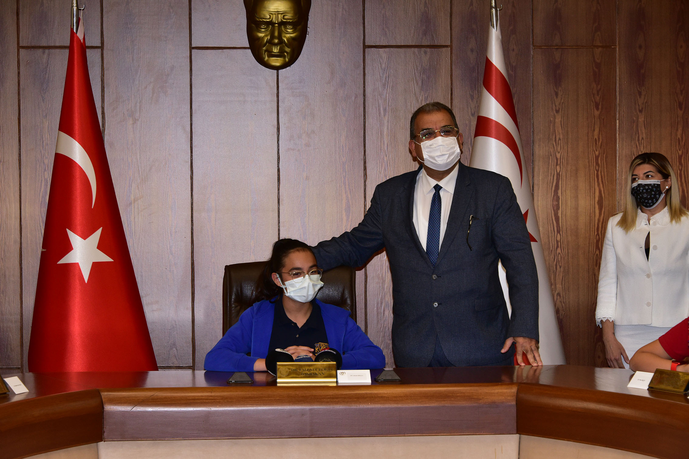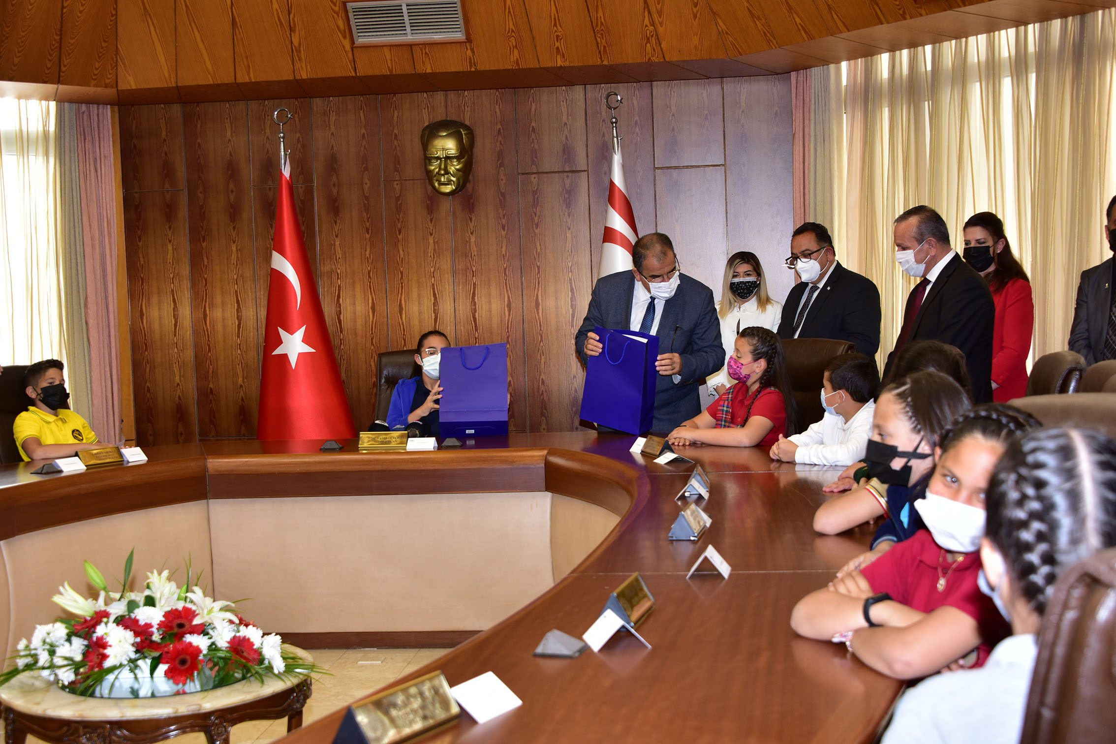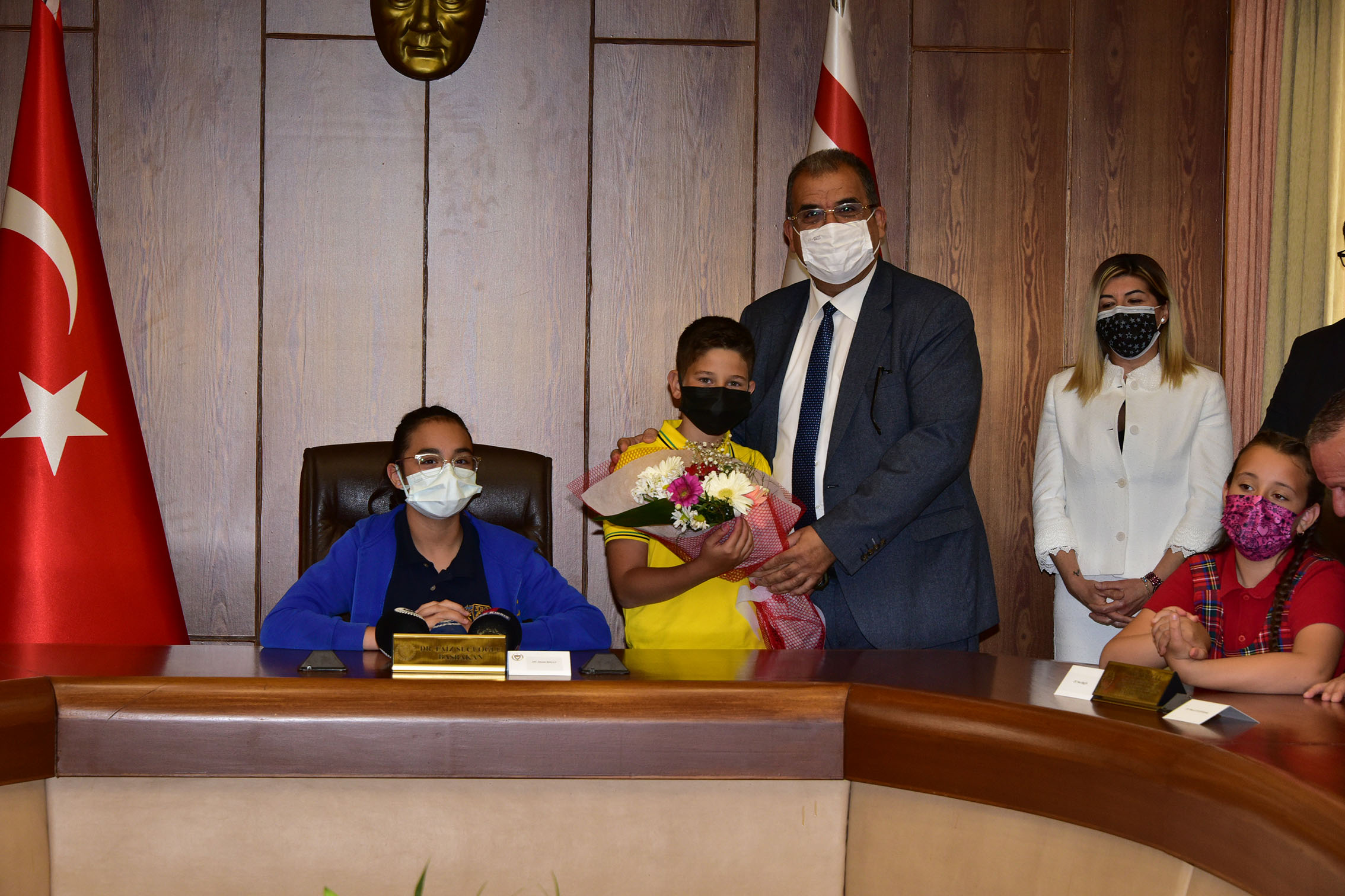 Lefkoşa, 22 Nisan 22 (TAK): 23 Nisan Ulusal Egemenlik ve Çocuk Bayramı kutlamaları çerçevesinde Bakanlar Kurulu toplantısında bakanlık koltuklarına oturan çocuklar ülkenin elektrik ve pahalılık sorunlarına çözüm istedi.