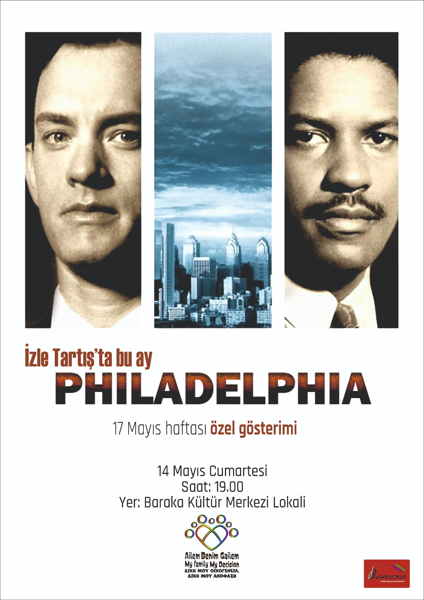 Lefkoşa, 13 Mayıs 22 (TAK): Baraka Kültür Merkezi’nde 17 Mayıs Uluslararası Homofobi, Bifobi ve Transfobi Karşıtlığı Haftası çerçevesinde yarın 19.00’da “Philadelphia” filmi gösterilecek.