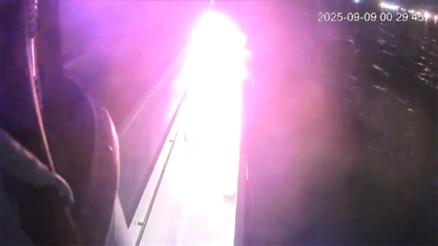 doğru hareket eden Küresel Sumud Filosu'nun ana teknesine Tunus'taki limanda