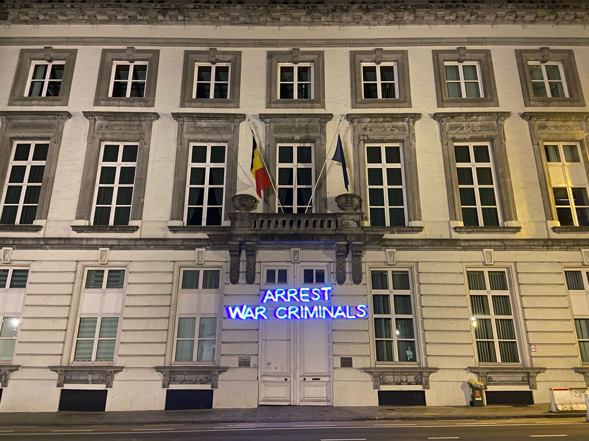 hükümet binasına "Savaş suçlularını tutuklayın" yazısı yansıttı.