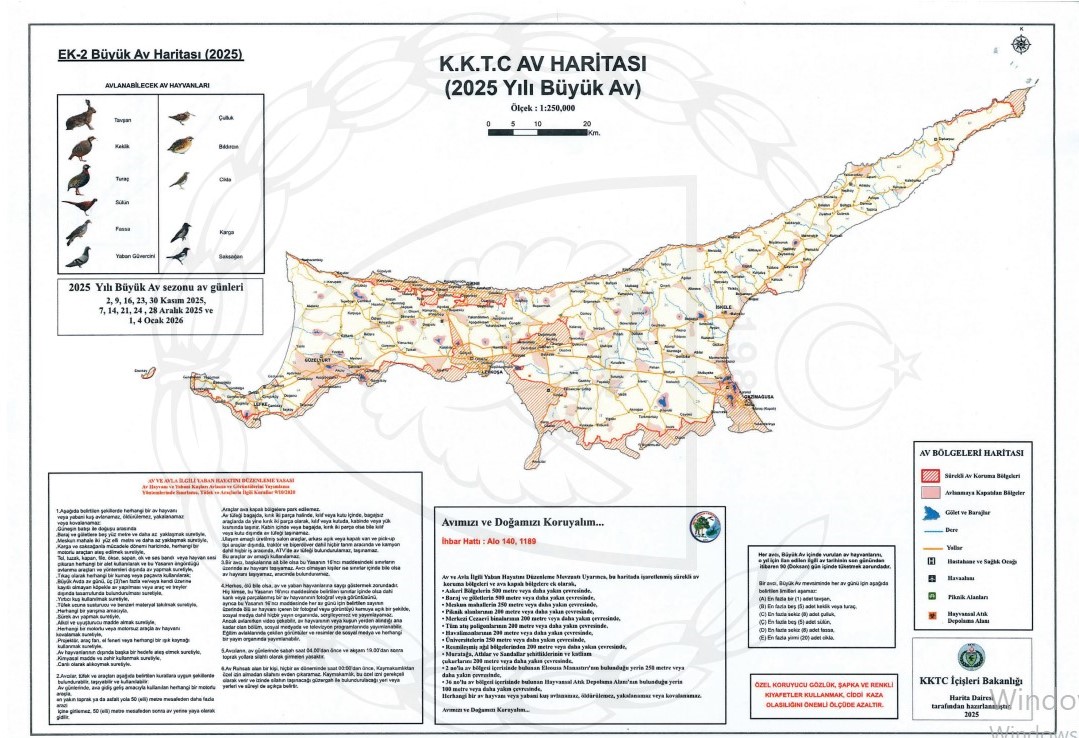 Lefkoşa, 31 Ekim 25 (TAK): Büyük Av sezonu pazar günü başlıyor. 4 Ocak’ta sona erecek büyük av sezonunda 12 gün avlanılabilecek.