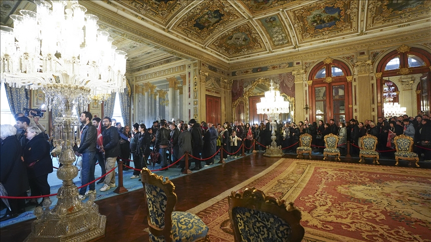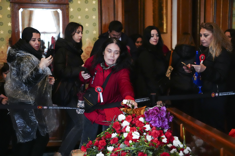 Yağışlı havada Dolmabahçe Sarayı önünde uzun kuyruklar oluşturan vatandaşlar, Atatürk'ün yatağına karanfiller bıraktı
