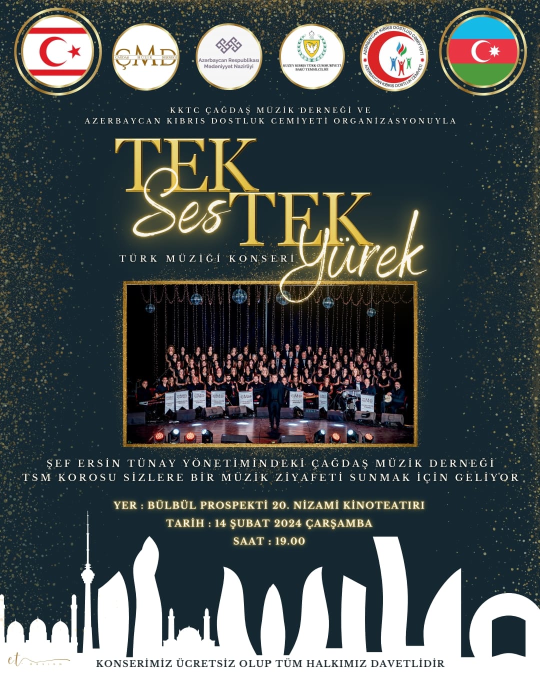 Lefkoşa, 7 Şubat 24 (TAK): Çağdaş Müzik Derneği Türk Sanat Müziği Korosu, Nahçıvan ve Bakü’de konserler verecek.