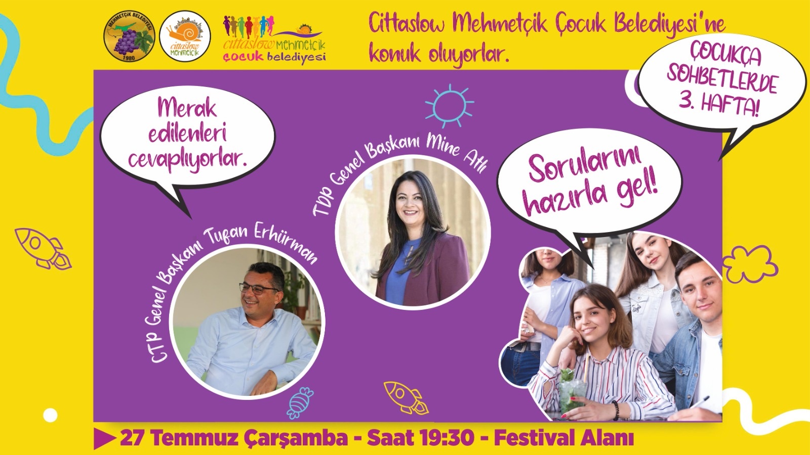 Lefkoşa, 26 Temmuz 22 (TAK): Cittaslow Mehmetçik Çocuk Belediyesi, Çocukça Sohbetler etkinliğinin üçüncüsünde yarın