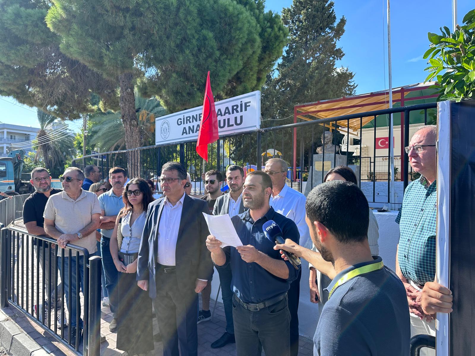 Lefkoşa, 18 Eylül 24 (TAK): Cumhuriyetçi Türk Partisi (CTP), okullarda yaşanan sıkıntılara ve okulların açılmasının ertelenmesini eleştirmek amacıyla Girne Maarif Anaokulu önünde eylem yaptı.
