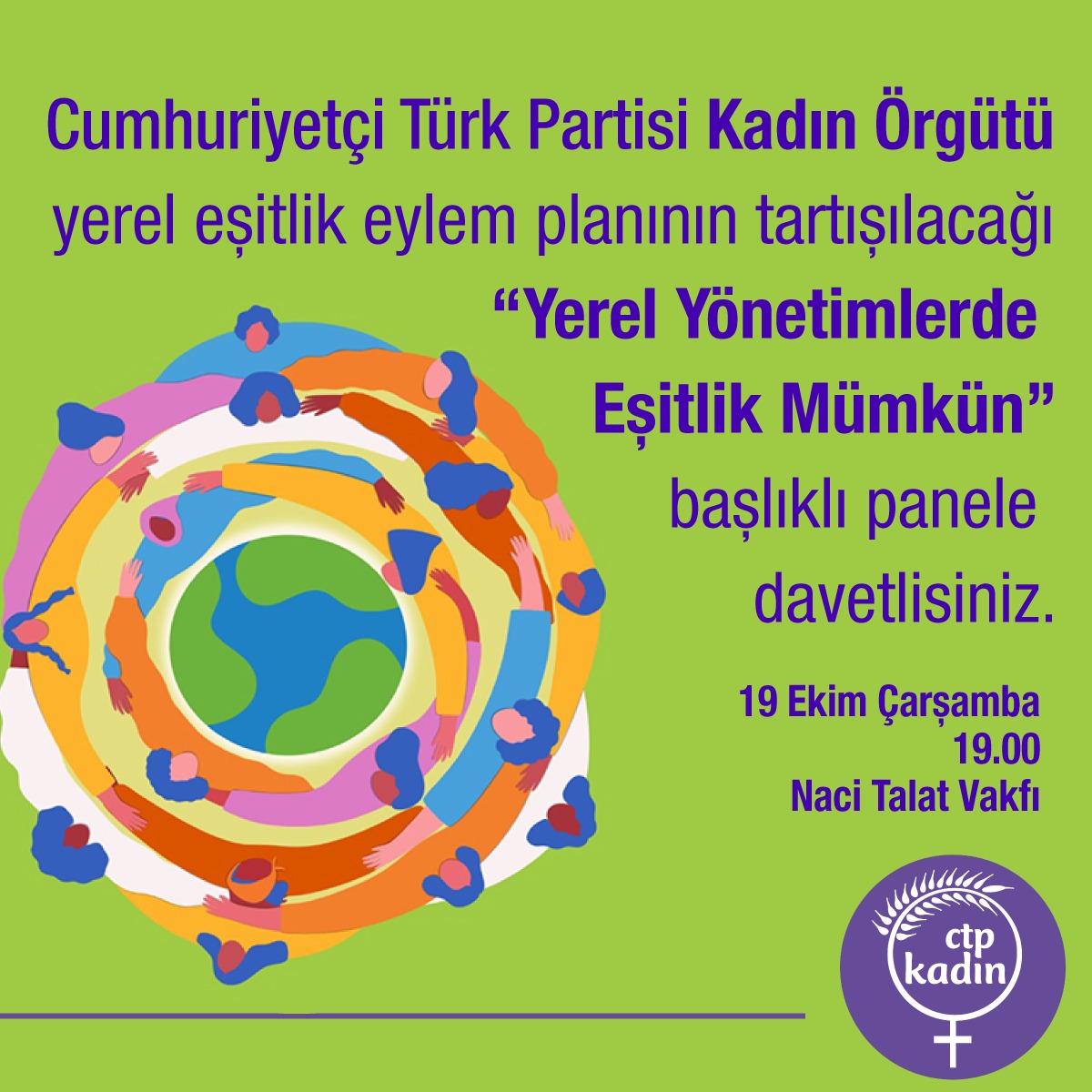 Lefkoşa, 17 Ekim 22 (TAK): CTP Kadın Örgütü, “Yerel Yönetimlerde Eşitlik” konulu panel düzenliyor.