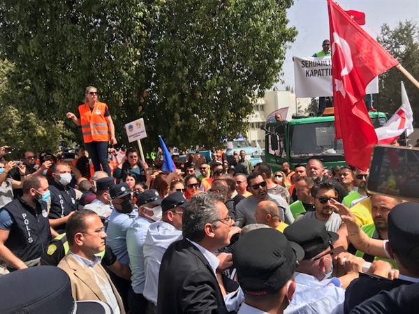 Lefkoşa, 6 Nisan 22 (TAK): CTP Genel Başkanı Tufan Erhürman, CTP milletvekilleri ile birlikte Meclis önündeki eylemcileri ziyaret etti.