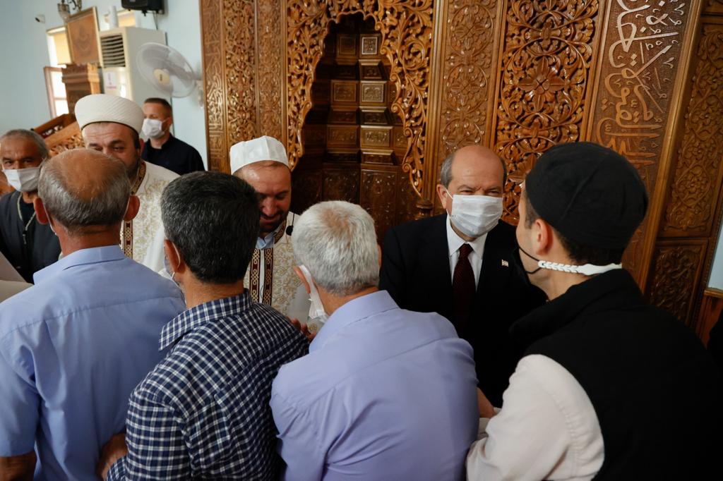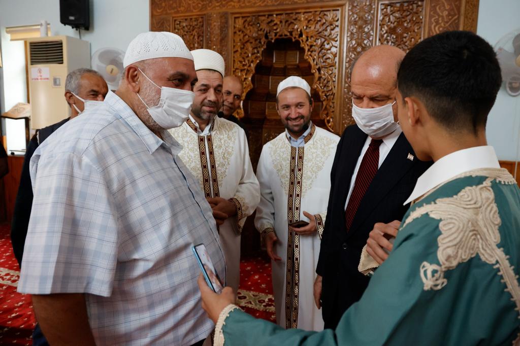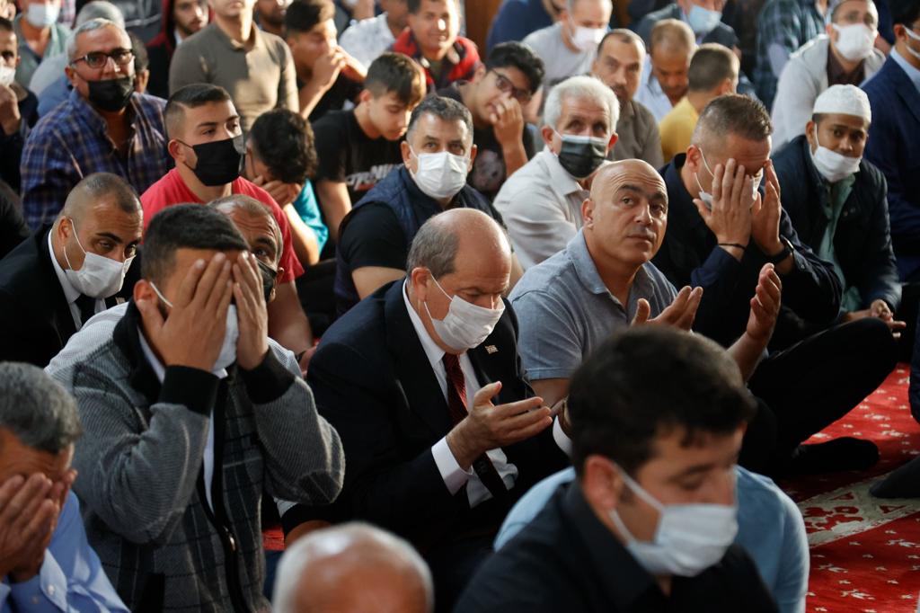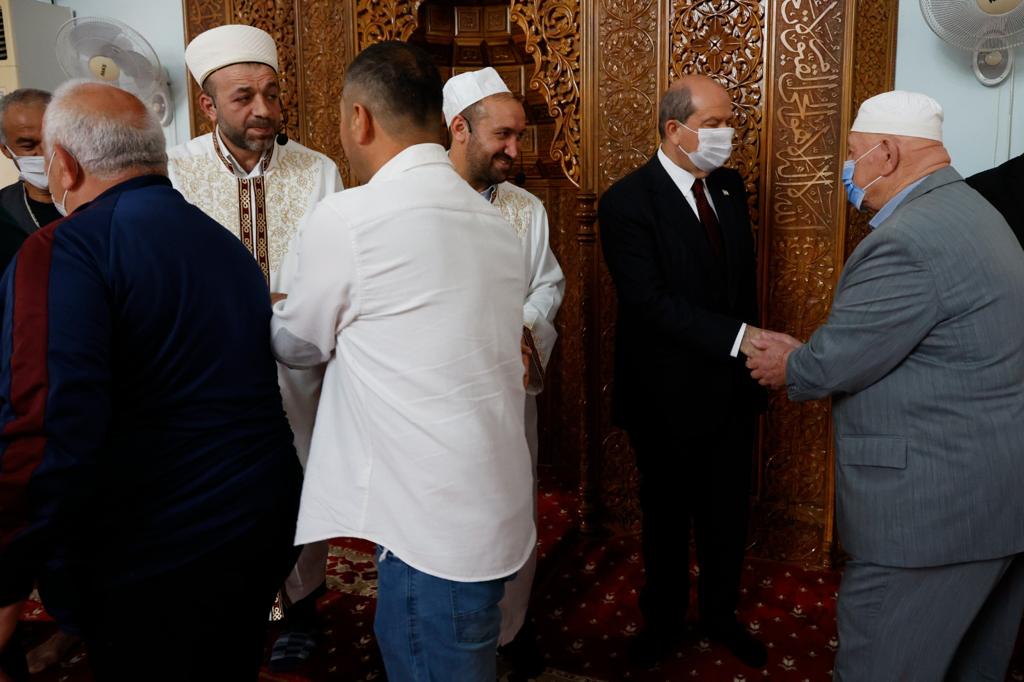 Lefkoşa, 2 Mayıs 22 (T.A.K.): Cumhurbaşkanı Ersin Tatar, Bayram namazını Hz. Ebubekir Camisi’nde kıldı.