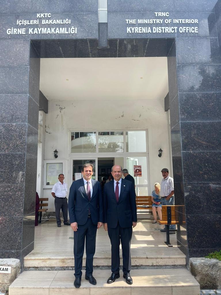 Lefkoşa, 14 Haziran 22 (TAK): Cumhurbaşkanı Ersin Tatar, Girne Kaymakamlığı’nı ziyaret ederek Girne Kaymakamı Sinan Güneş ile görüştü.
