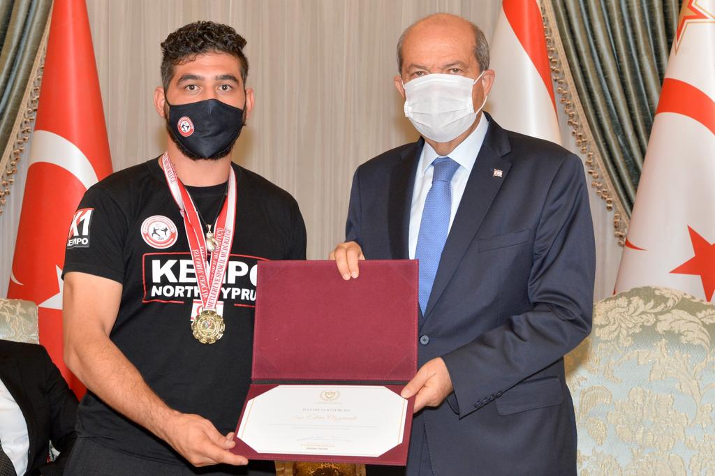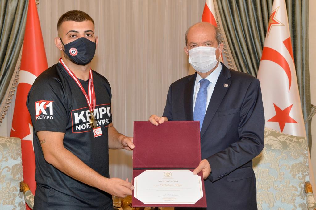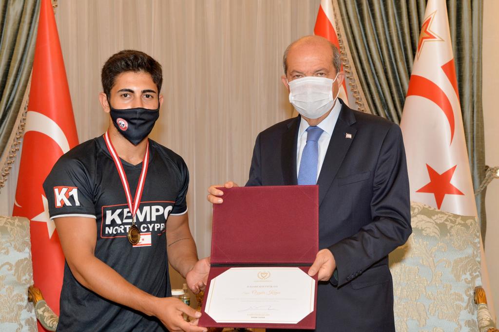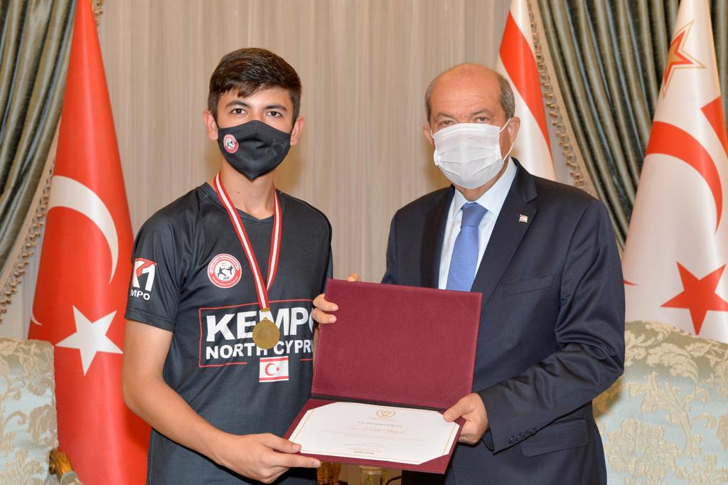 Lefkoşa, 7 Temmuz 22 (TAK): Cumhurbaşkanı Ersin Tatar, KKTC Kempo Savunma Sporları Federasyonu yönetimini ve başarı elde eden sporcuları kabul etti.