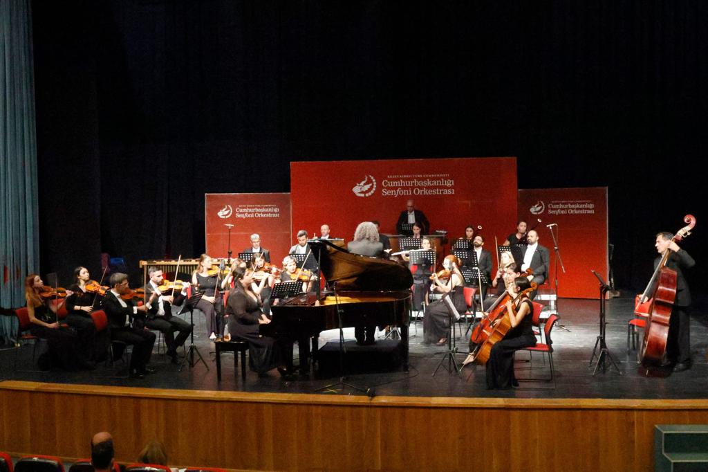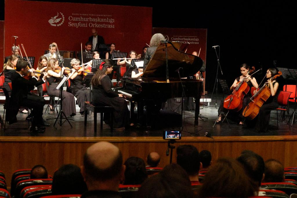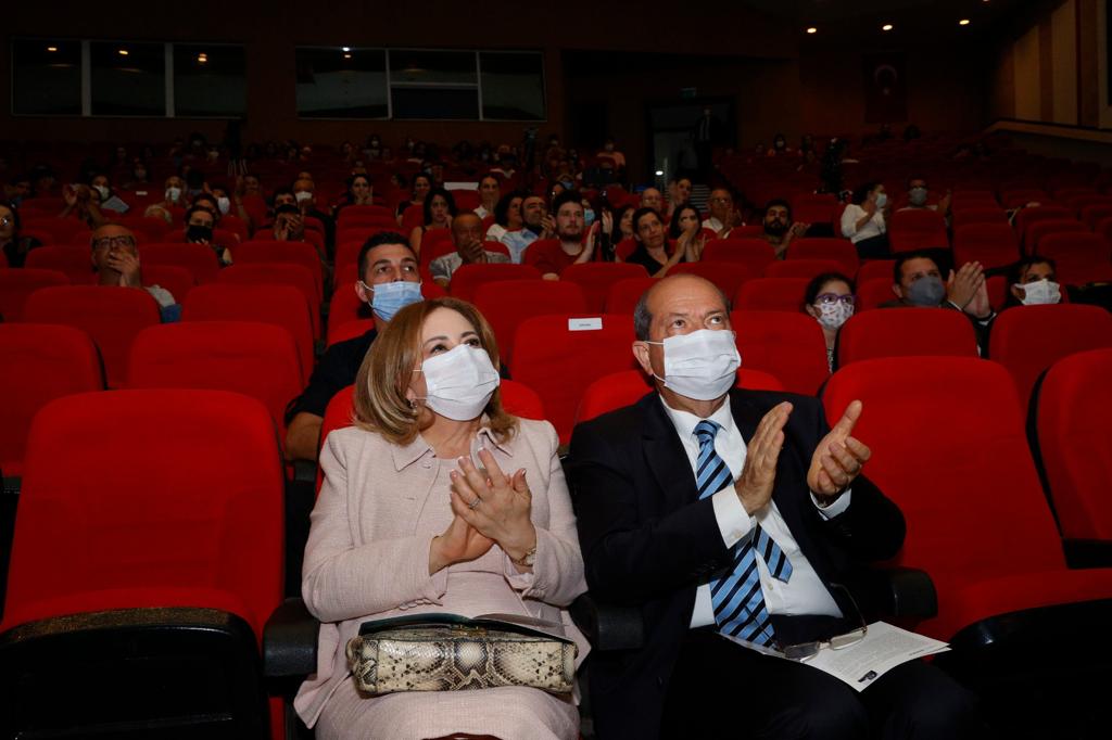 Lefkoşa, 21 Mayıs 22 (TAK): Cumhurbaşkanı Ersin Tatar, eşi Sibel Tatar ile birlikte, 19 Mayıs Atatürk’ü Anma, Gençlik ve Spor Bayramı etkinlikleri kapsamında KKTC Cumhurbaşkanlığı Senfoni Orkestrası’nın Lefkoşa AKKM’de verdiği Gençlik Konseri’ni izledi.