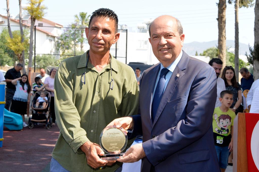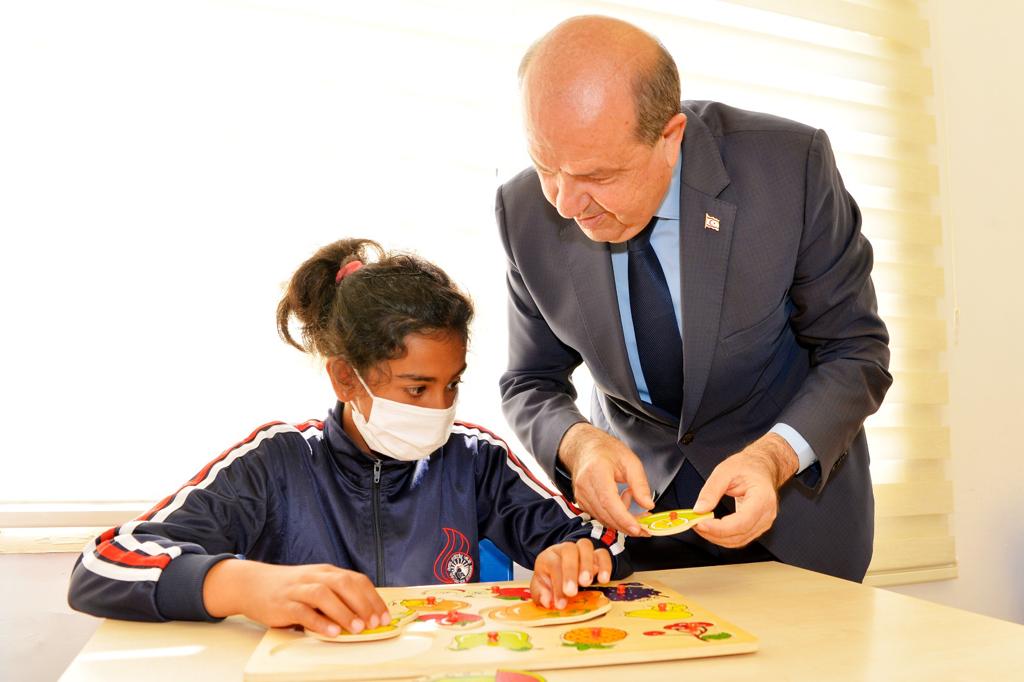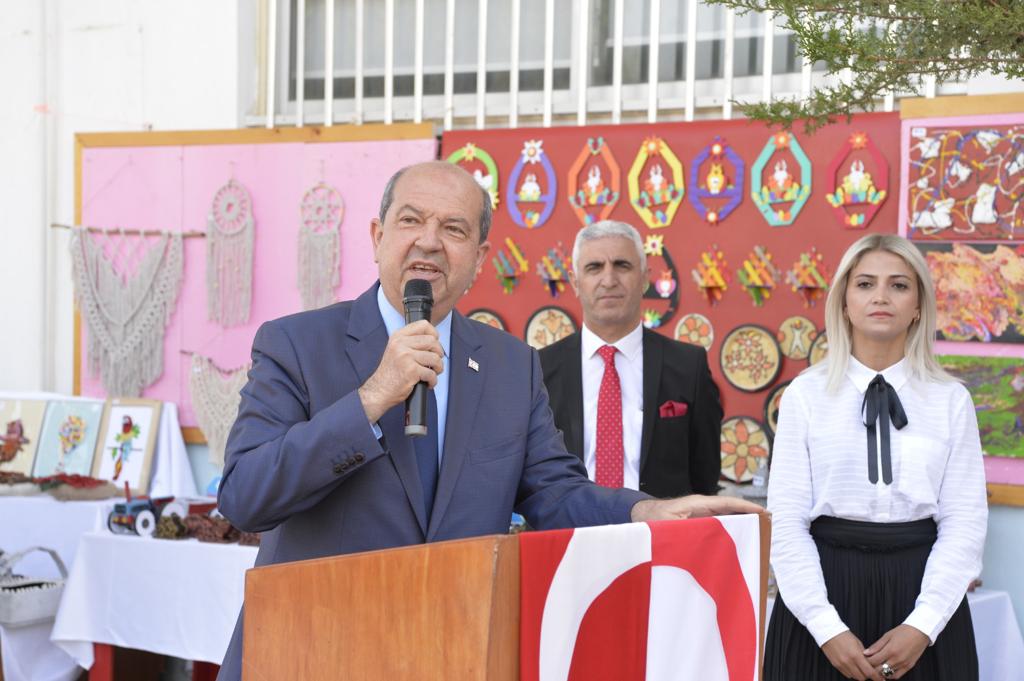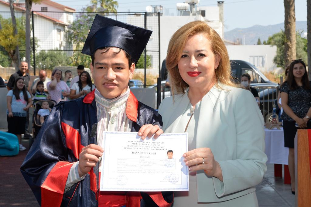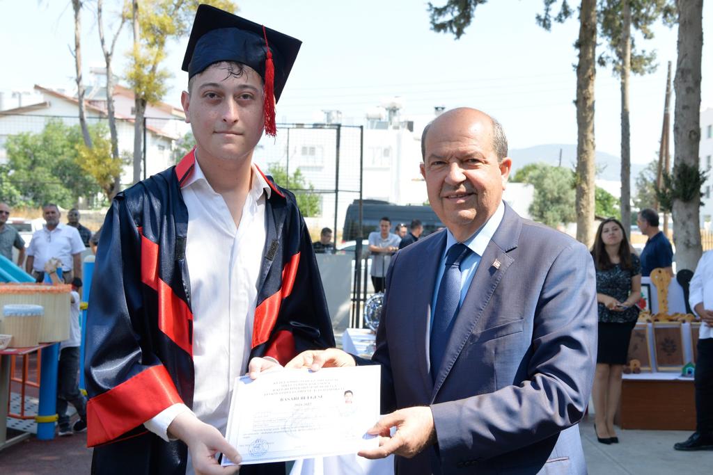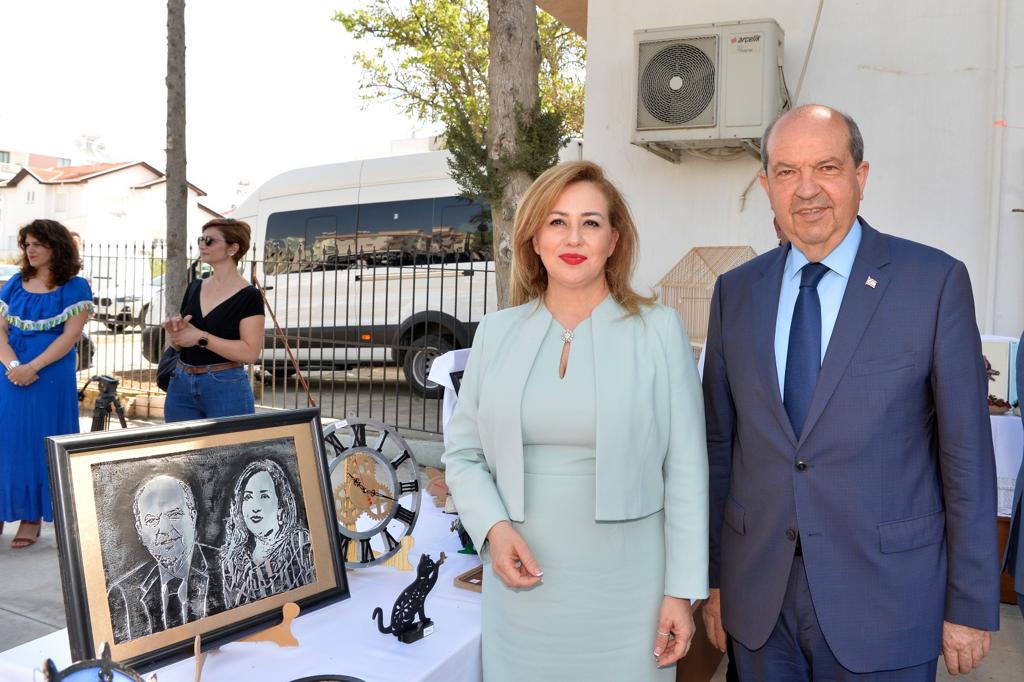 Lefkoşa, 24 Mayıs 22 (TAK): Cumhurbaşkanı Ersin Tatar eşi Sibel Tatar ile birlikte, Lefkoşa Özel Eğitim ve İş Eğitim Okulu 2021-2022 Eğitim Yılı Mezuniyet Töreni ve Sergi Açılışı’na katıldı