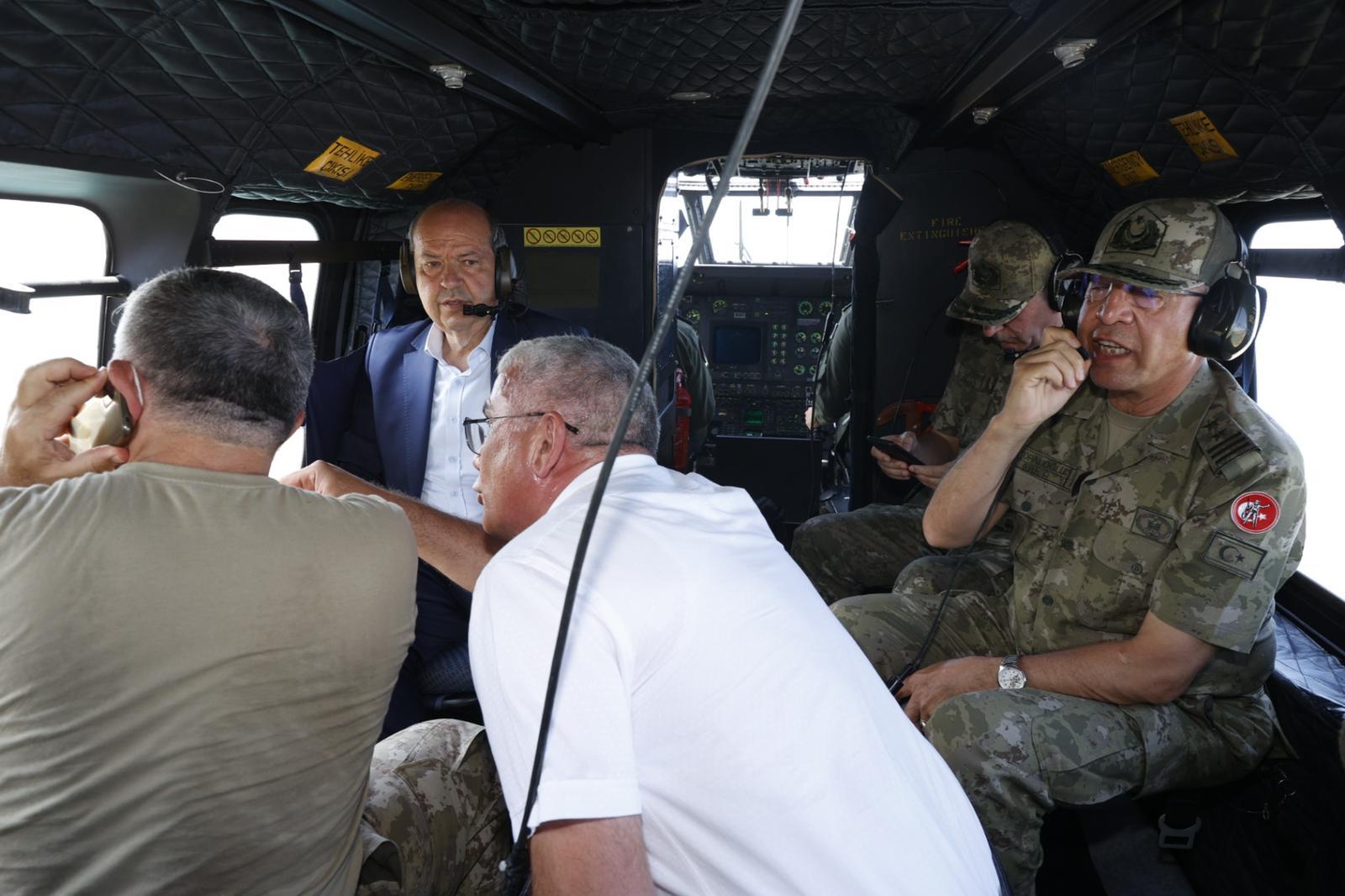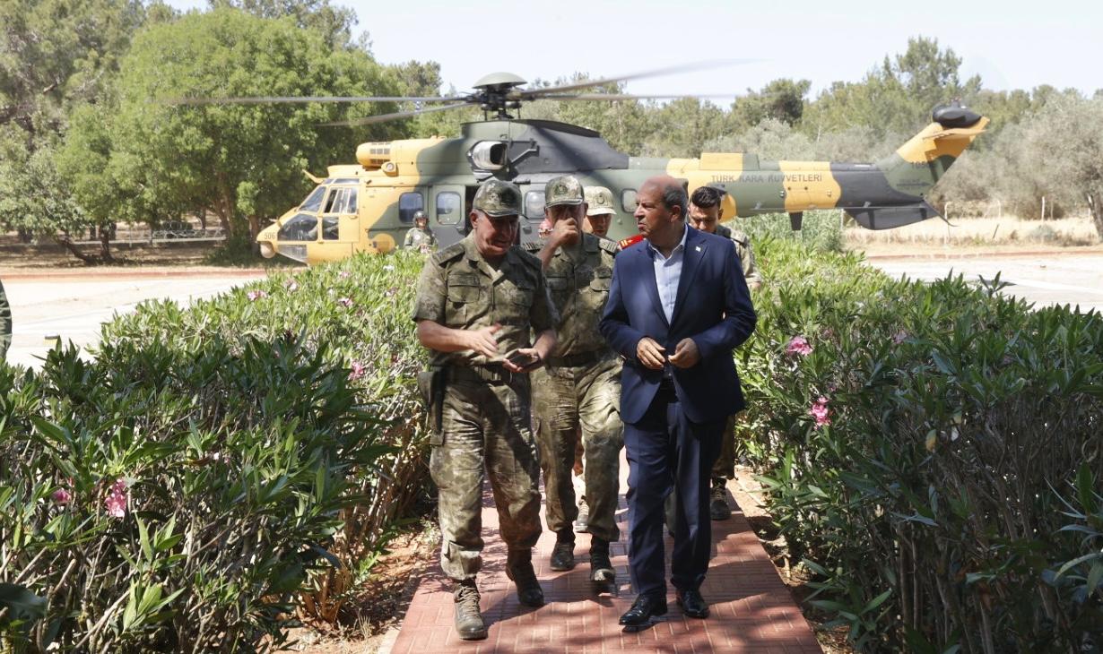 Lefkoşa, 27 Mayıs 22 (TAK): Cumhurbaşkanı Ersin Tatar, yangın bölgesinde incelemelerde bulunuyor.