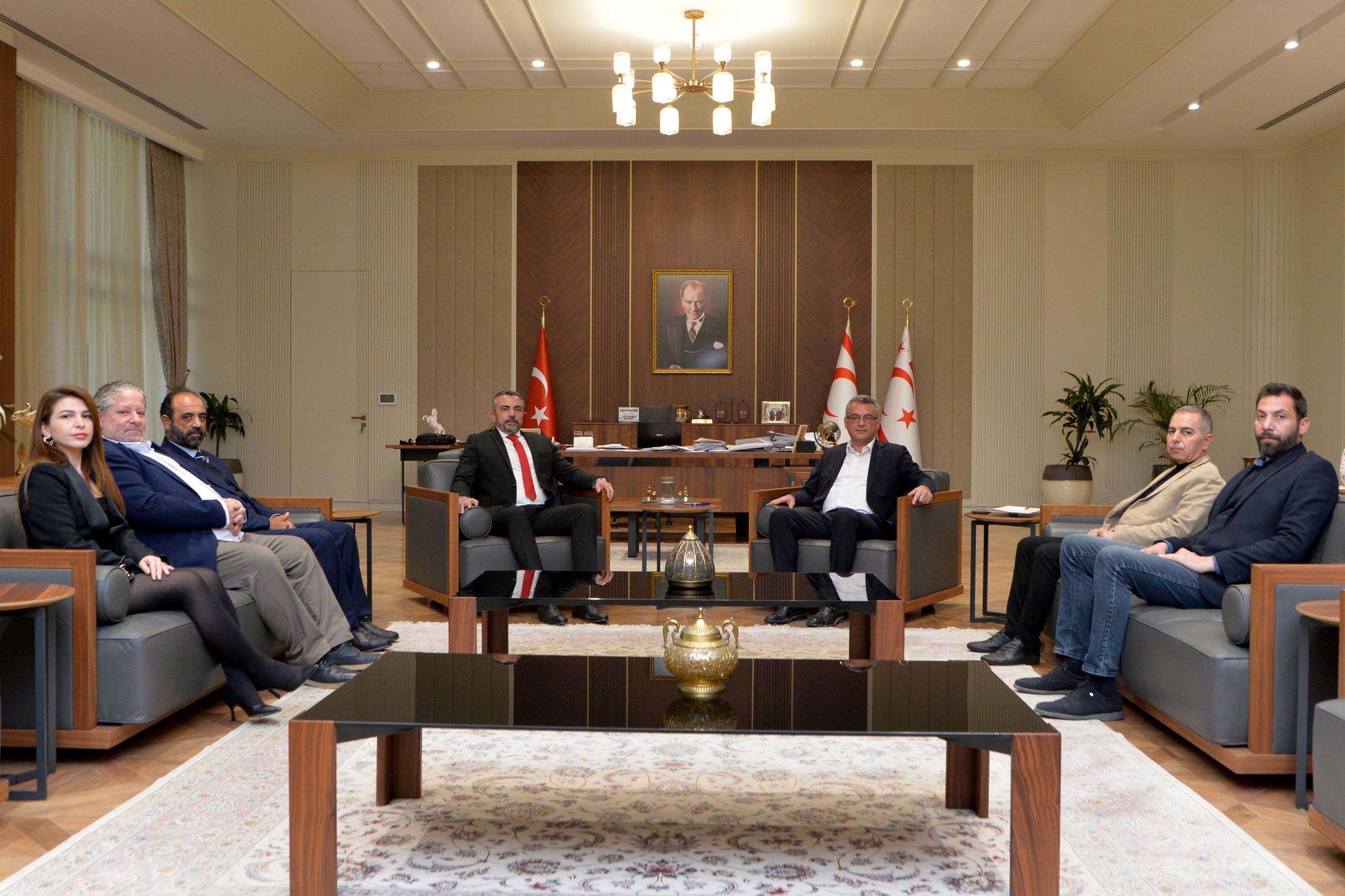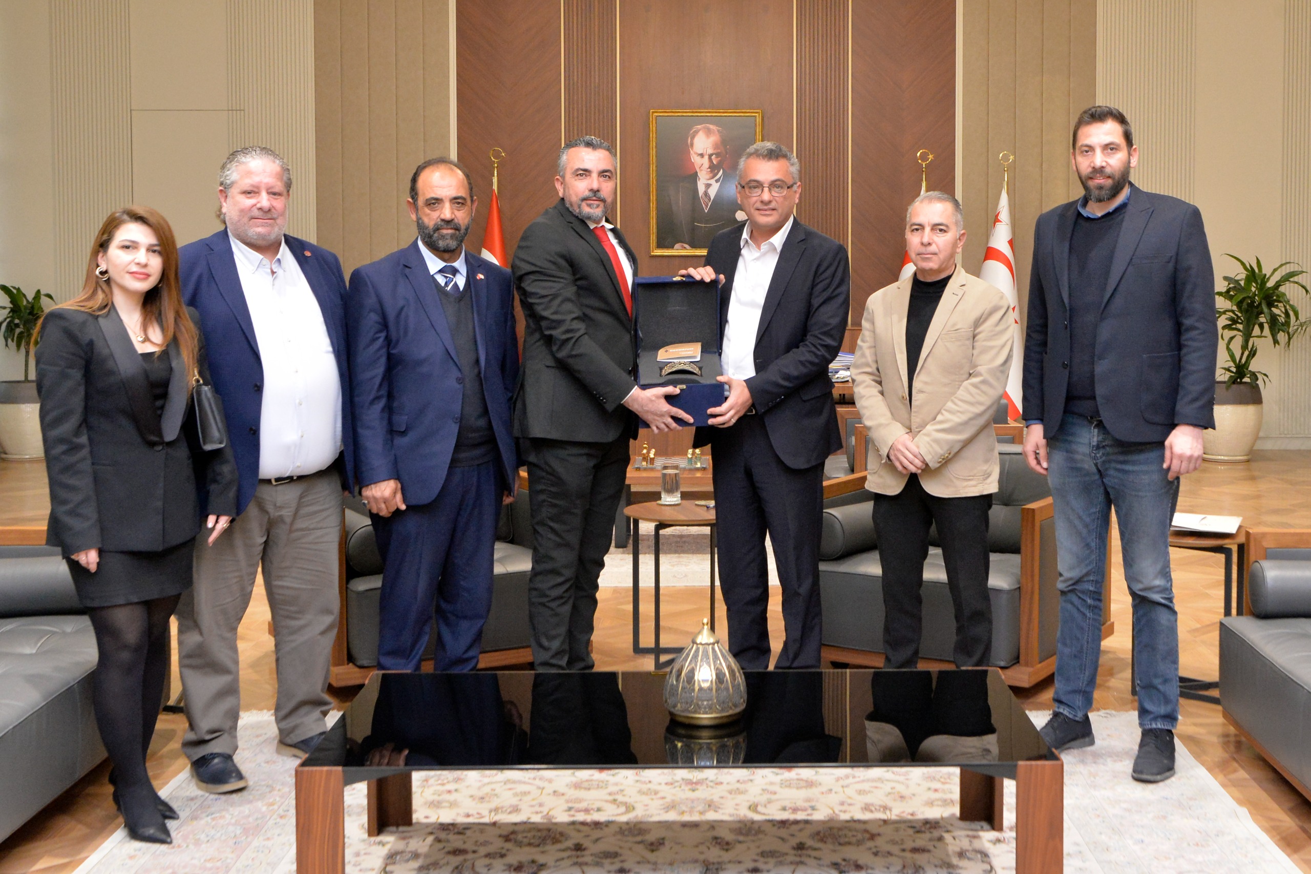 Lefkoşa, 15 Ocak 26 (TAK): Cumhurbaşkanı Tufan Erhürman, Hür İşçi Sendikaları Federasyonu (Hür-İş) Genel Başkanı Ahmet Serdaroğlu ve beraberindeki heyeti kabul etti