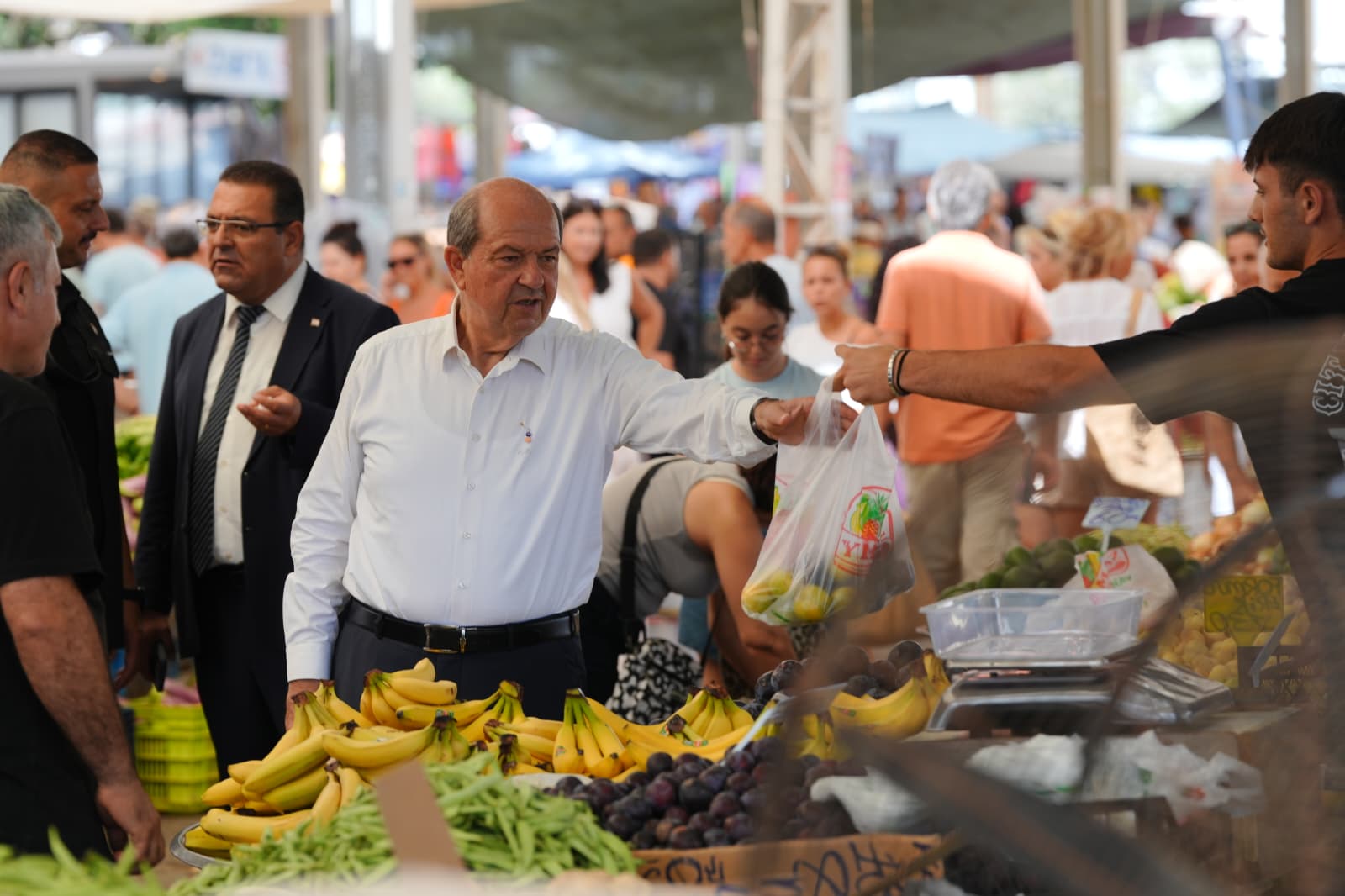 Lefkoşa, 30 Temmuz 25 (TAK): Cumhurbaşkanı Ersin Tatar, Girne'de Çarşamba günleri kurulan Girne Açık Pazarı ziyaret etti.