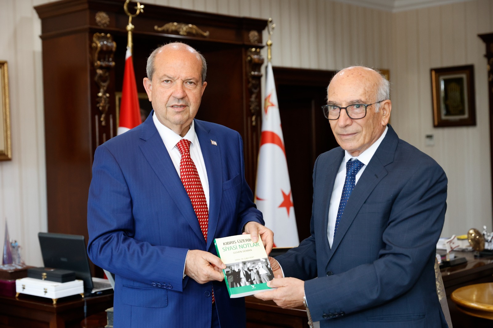 Lefkoşa, 19 Haziran 23 (TAK): Cumhurbaşkanı Ersin Tatar’a, Güven Silman tarafından kaleme alınan “Kıbrıs Üzerine Notlar” kitabı takdim edildi