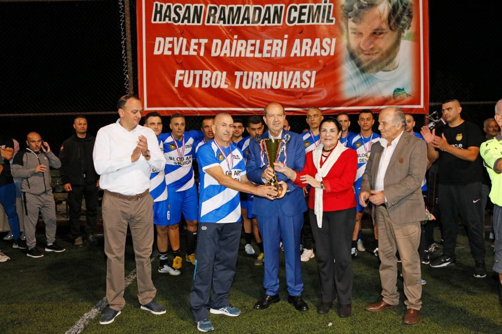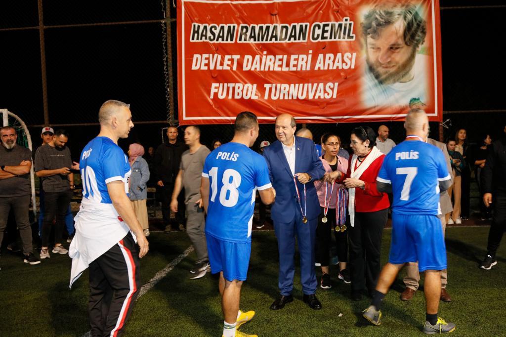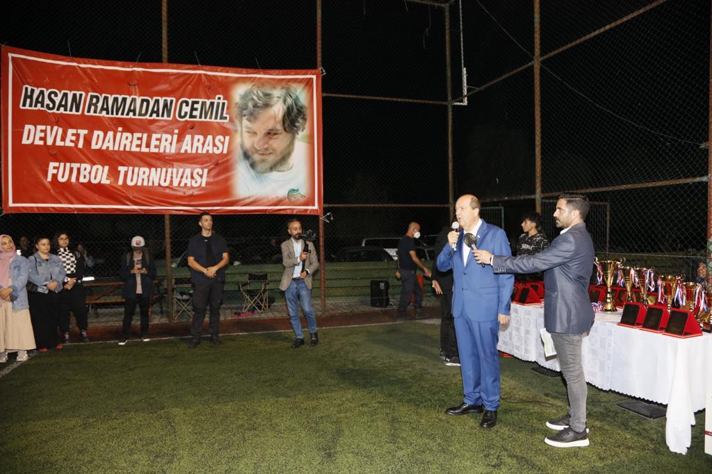 Cumhurbaşkanı Tatar, 12. Hasan Ramadan Cemil Devlet Daireleri Arası Halı Saha Futbol Turnuvası etkinliğine katıldı.
