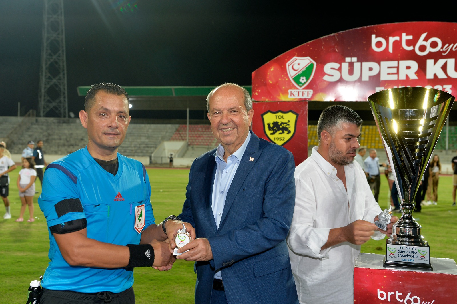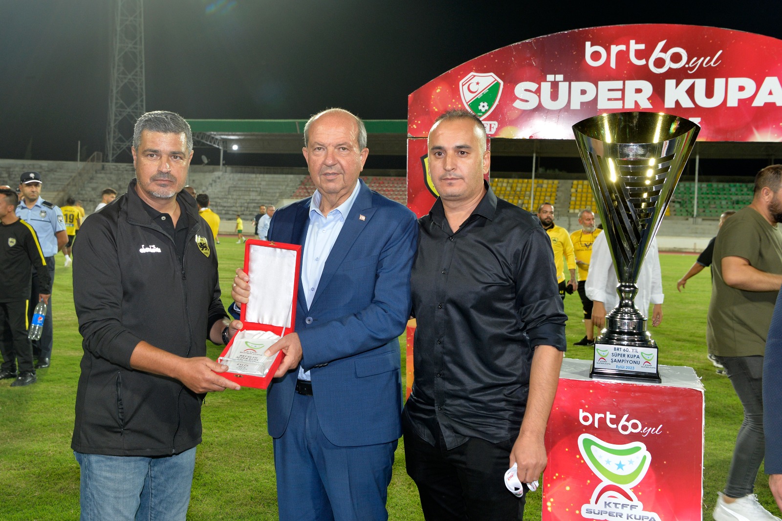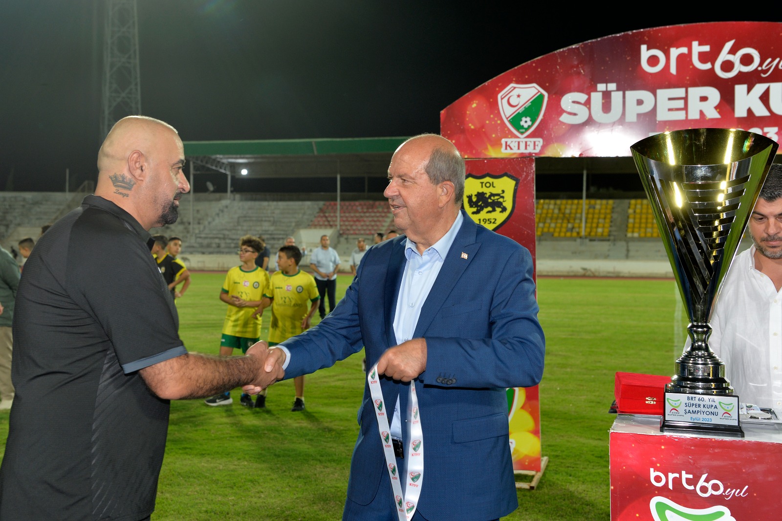 Lefkoşa, 16 Eylül 23 (TAK): Cumhurbaşkanı Ersin Tatar, BRT 60. Yıl Süper Kupa finalini izledi.