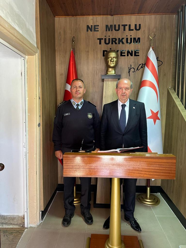 Lefkoşa, 17 Nisan 23 (TAK): Cumhurbaşkanı Ersin Tatar, Güzelyurt Polis Müdürlüğü’nü ziyaret etti.