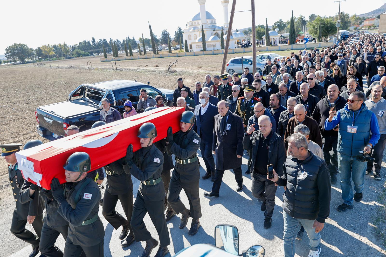 yapan iş insanı Mustafa Hacıali için düzenlenen askeri cenaze törenine katıldı.