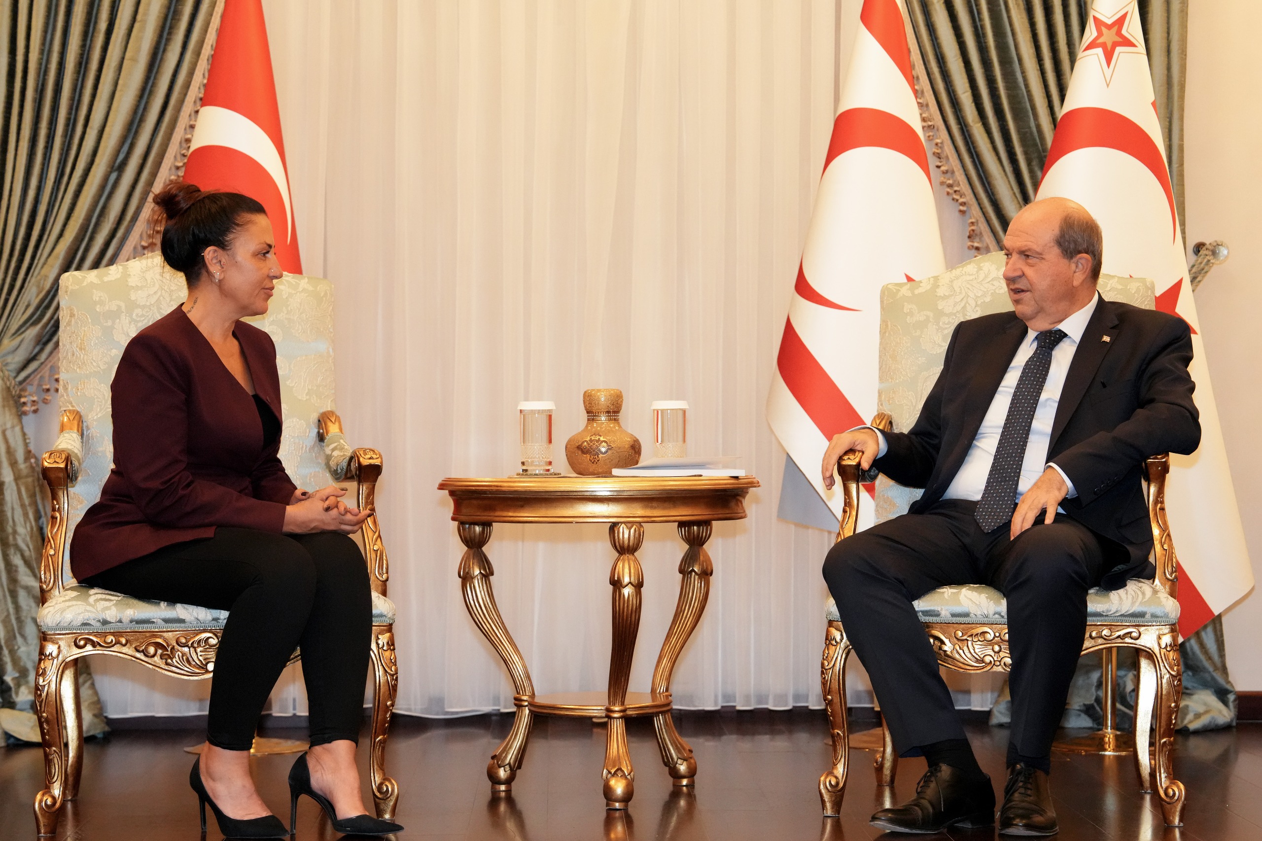 Lefkoşa, 3 Ekim 24 (TAK): Cumhurbaşkanı Ersin Tatar, Başbakanlık Uyuşturucu ile Mücadele Komisyonu Başkanı Teyfide Tecel Hatipoğlu ve üyelerini kabul etti.