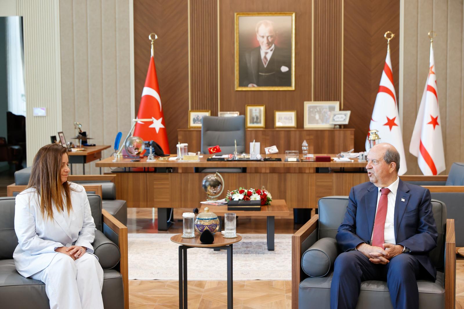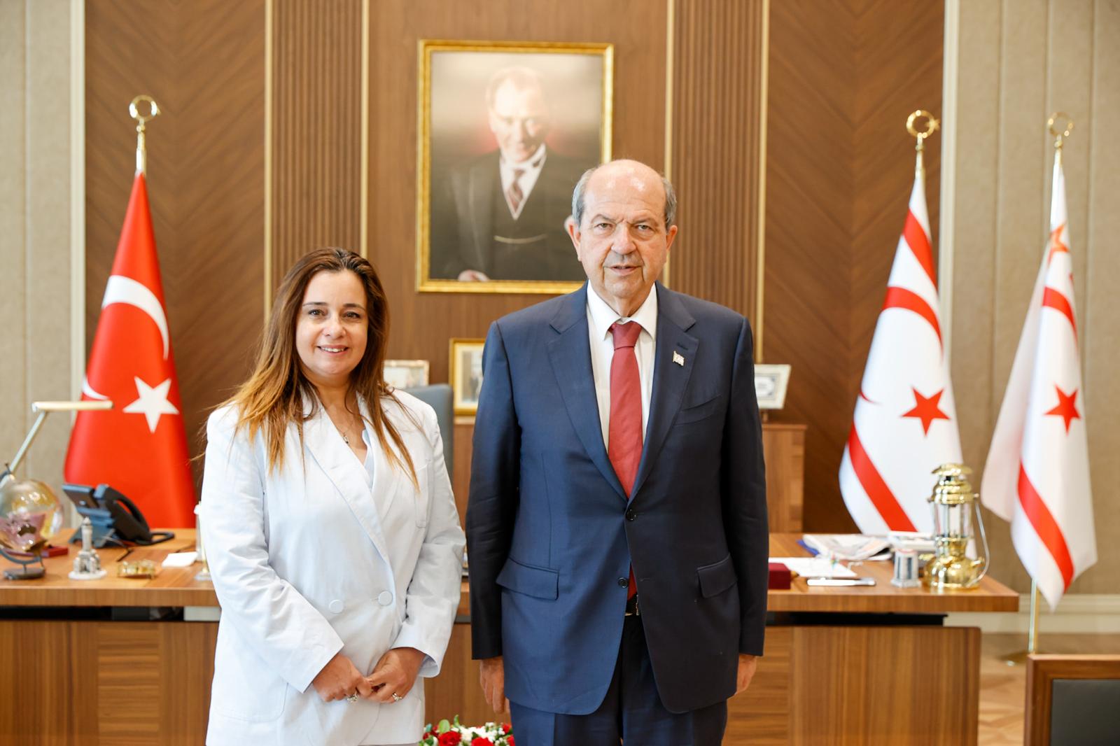 Lefkoşa, 25 Temmuz 25 (TAK): Cumhurbaşkanı Ersin Tatar, Brüksel Temsilciliği görevine atanan Gizem Alpman’ı kabul ederek, yeni görevinde başarılar diledi.