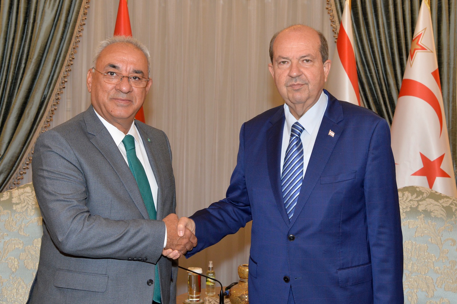 Lefkoşa, 16 Kasım 22 (TAK): Cumhurbaşkanı Ersin Tatar, DSP Genel Başkanı Önder Aksakal ve beraberindeki heyeti kabul etti.