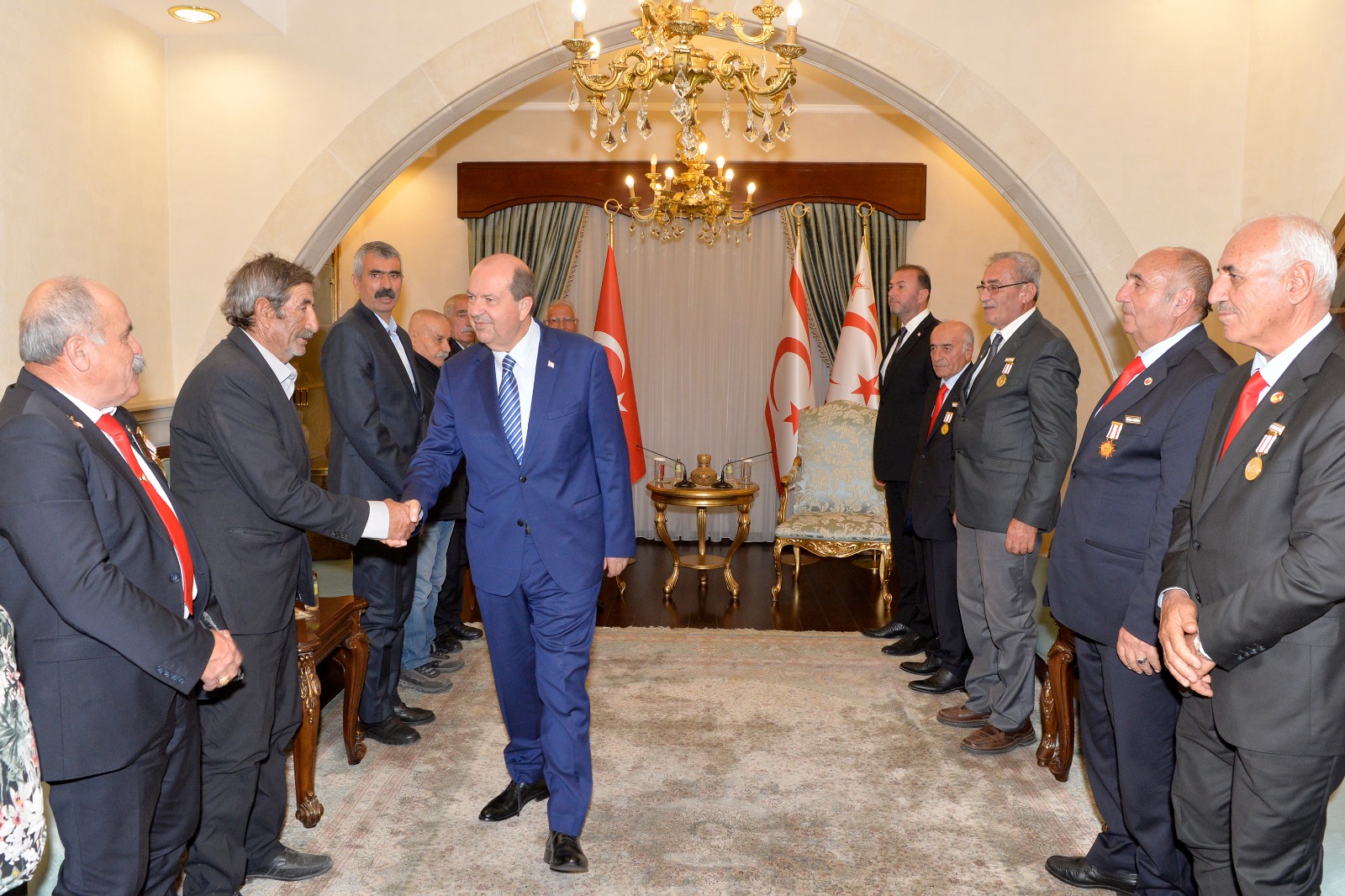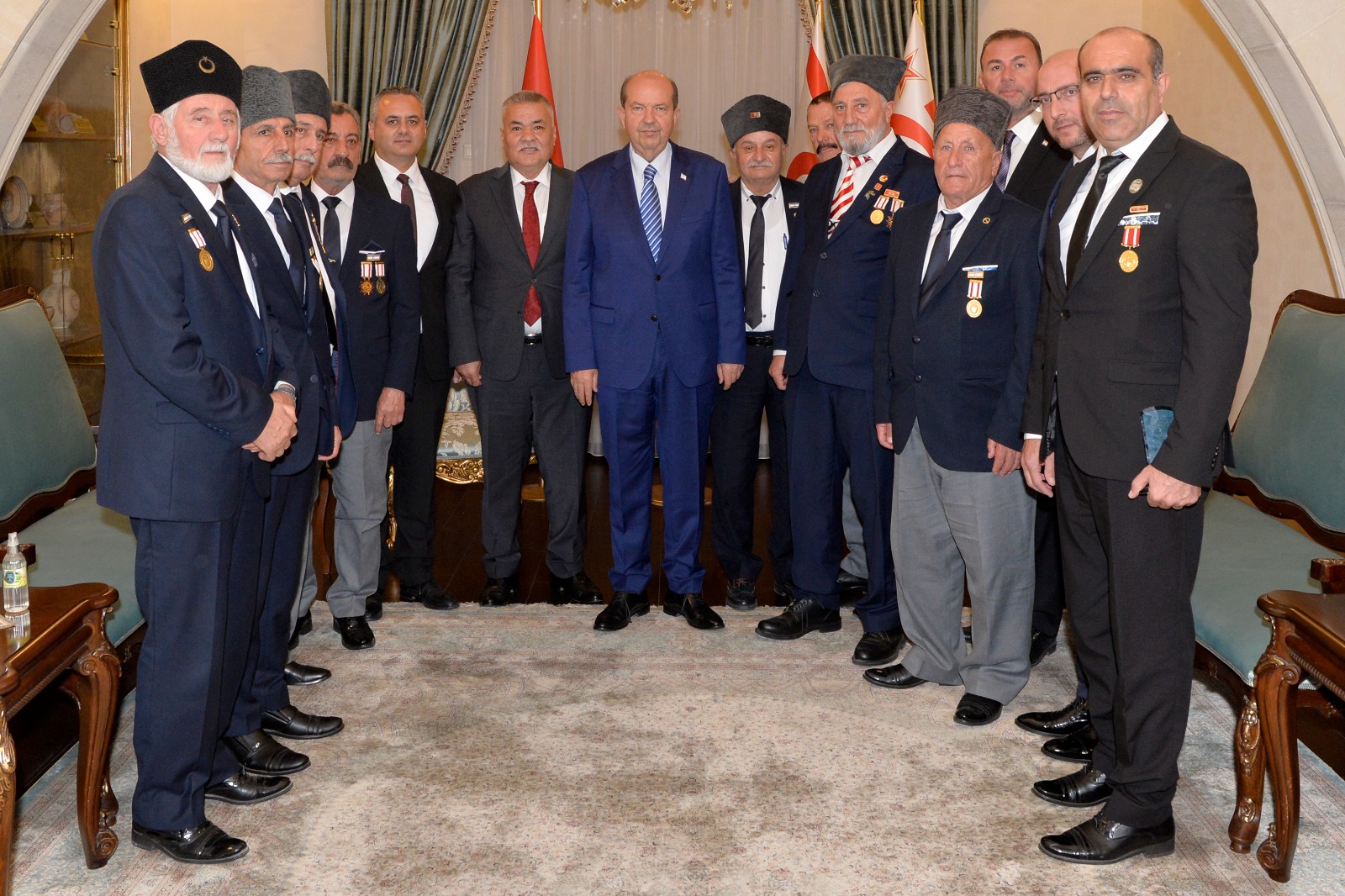 Lefkoşa, 16 Kasım 22 (TAK): Cumhurbaşkanı Ersin Tatar, 15 Kasım Cumhuriyet Bayramı kutlamalarına katılan gazileri kabul etti.