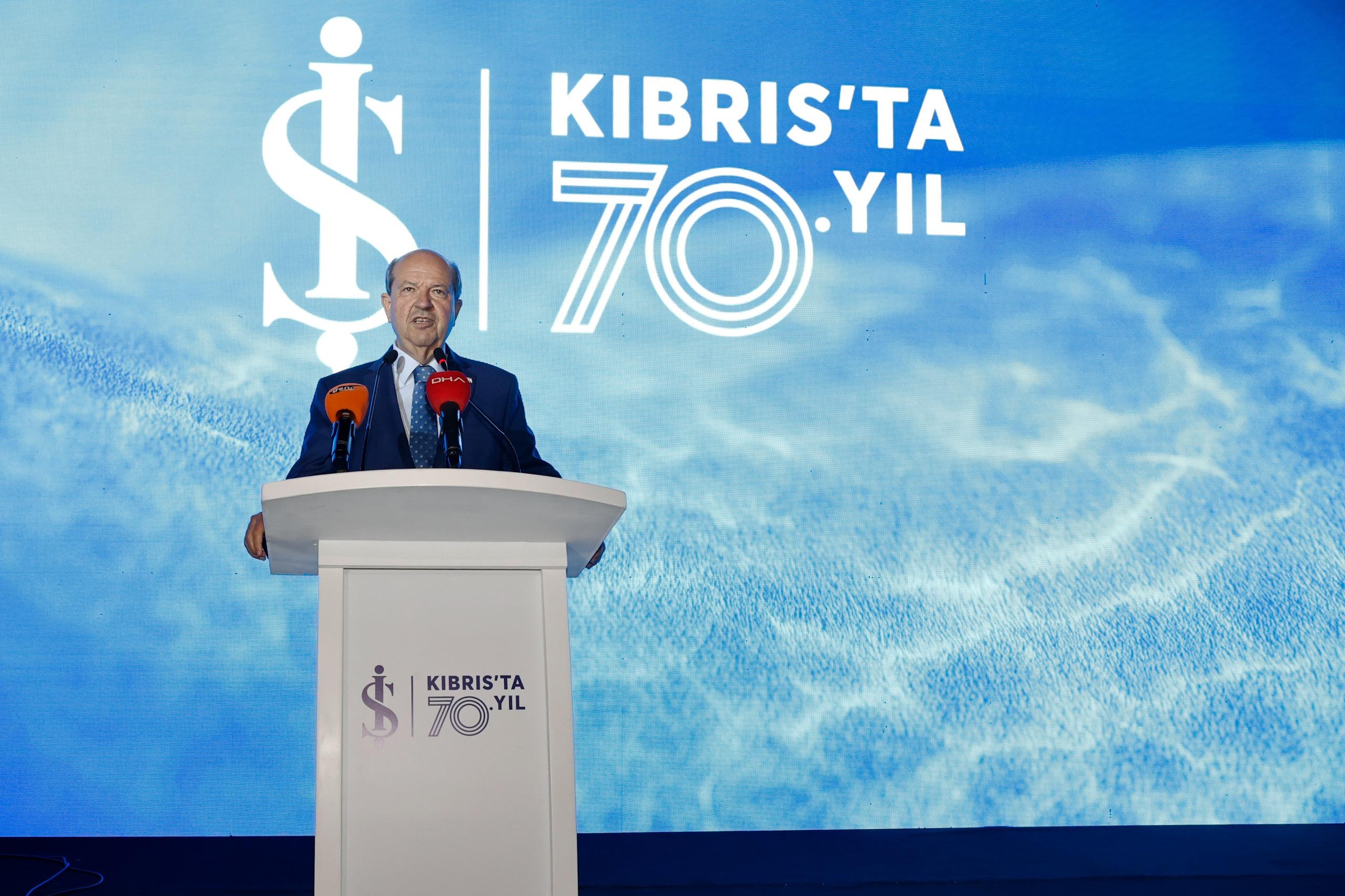 Lefkoşa, 19 Nisan 2025 (TAK): Cumhurbaşkanı Ersin Tatar, İş Bankası'nın Kıbrıs'ta faaliyete geçmesinin 70’nci yılı dolayısıyla düzenlenen etkinliğe katıldı.