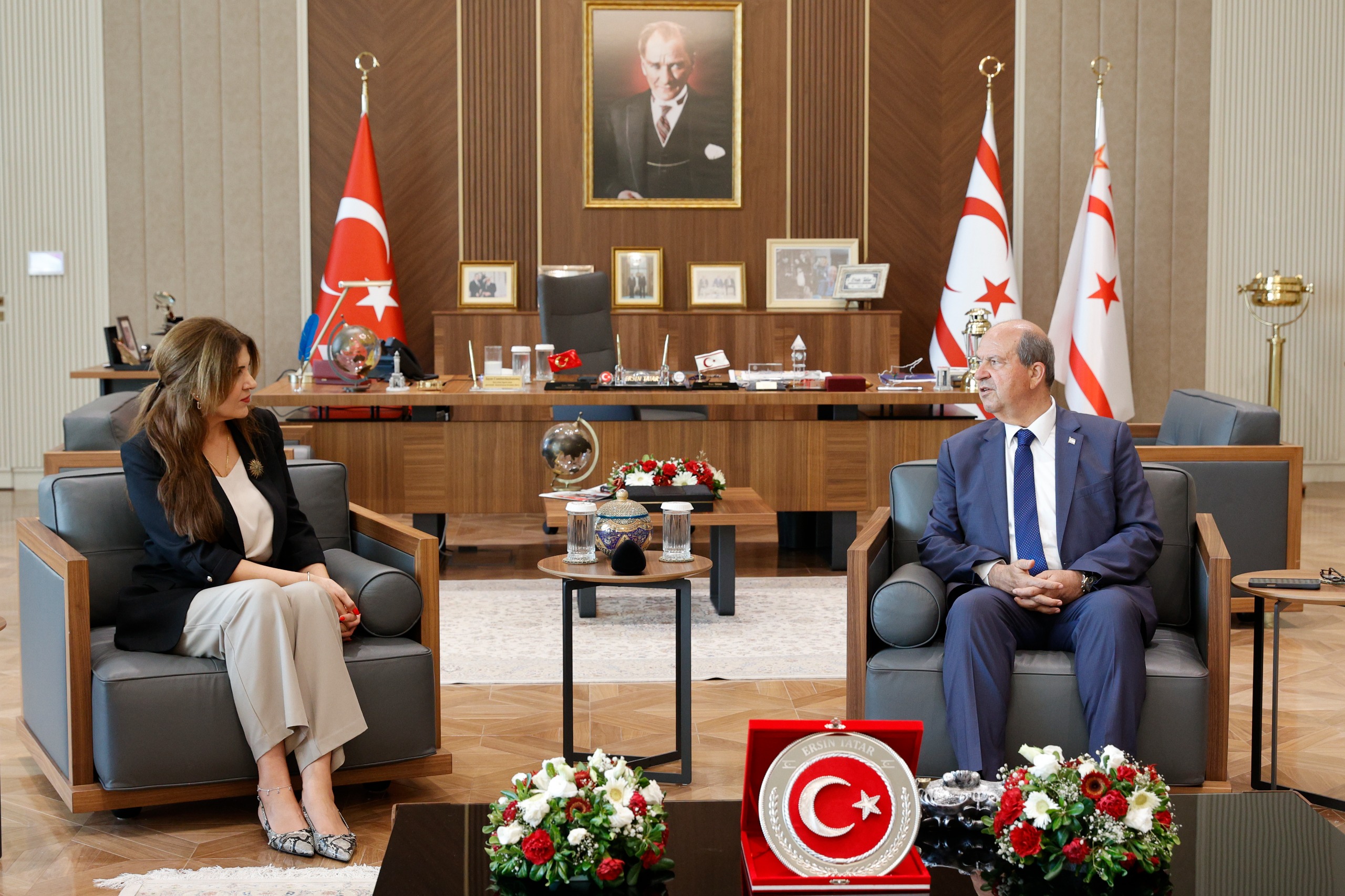 Lefkoşa, 24 Temmuz 25 (TAK): Cumhurbaşkanı Ersin Tatar, İstanbul Başkonsolosluğuna atanan Zalihe Mendeli’yi kabul ederek, yeni görevinde başarılar diledi.