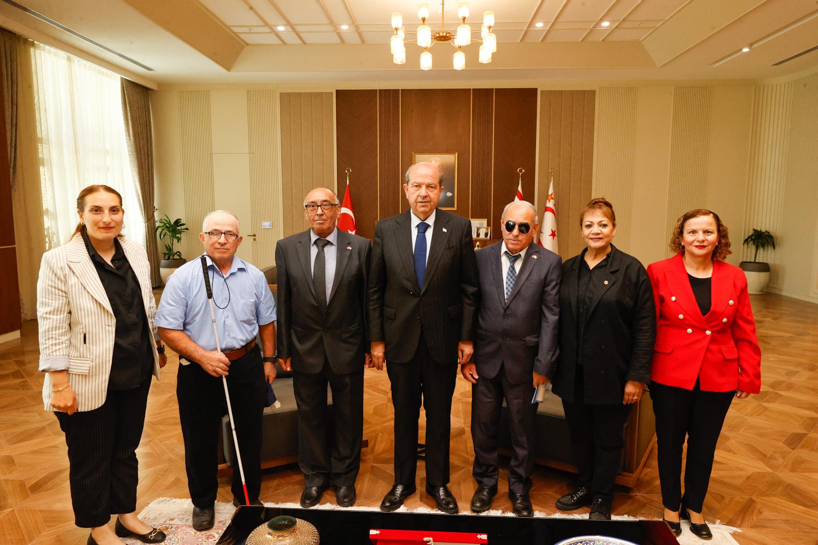 Lefkoşa, 15 Mayıs 25 (TAK): Cumhurbaşkanı Ersin Tatar, Kıbrıs Türk Engelliler Federasyonu ile Federasyon'a bağlı dernek temsilcilerini kabul etti.