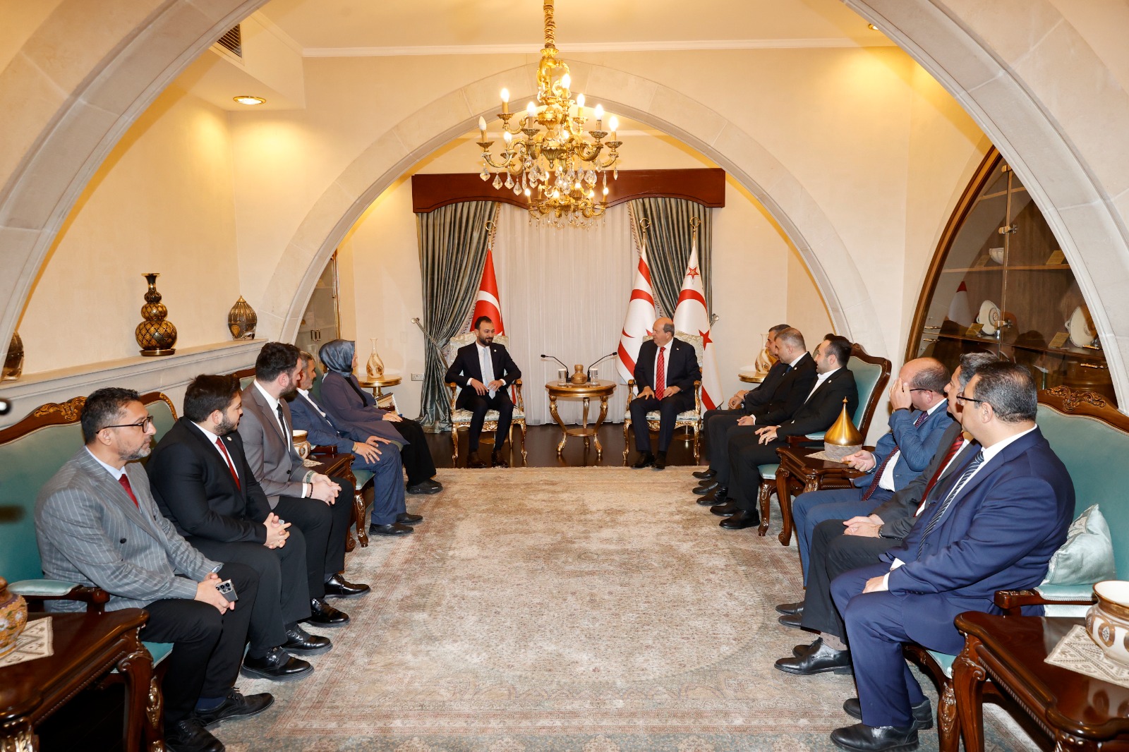 Lefkoşa, 19 Şubat 25 (TAK): Cumhurbaşkanı Ersin Tatar, Uluslararası Demokratlar Birliği (UİD) KKTC Bölge Başkanı Fadıl Şanverdi ve heyetini kabul etti.