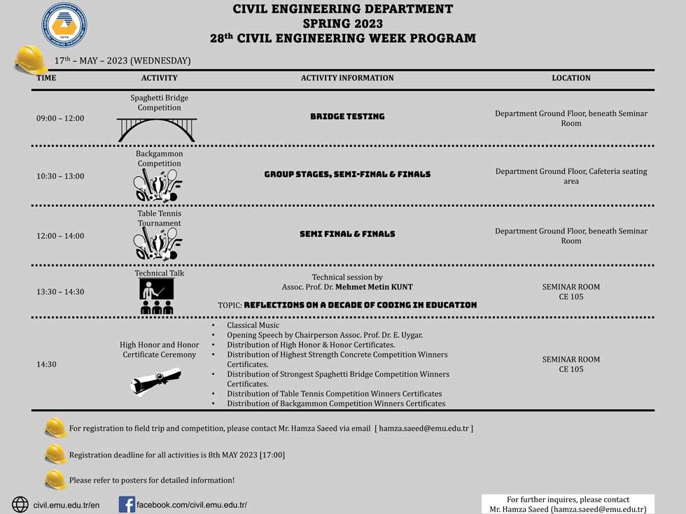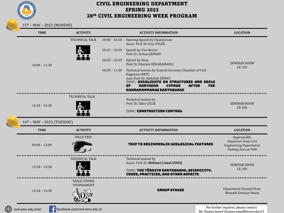 bu yıl 28’incisi düzenlenecek “İnşaat Mühendisliği Haftası” etkinlikleri 15-17