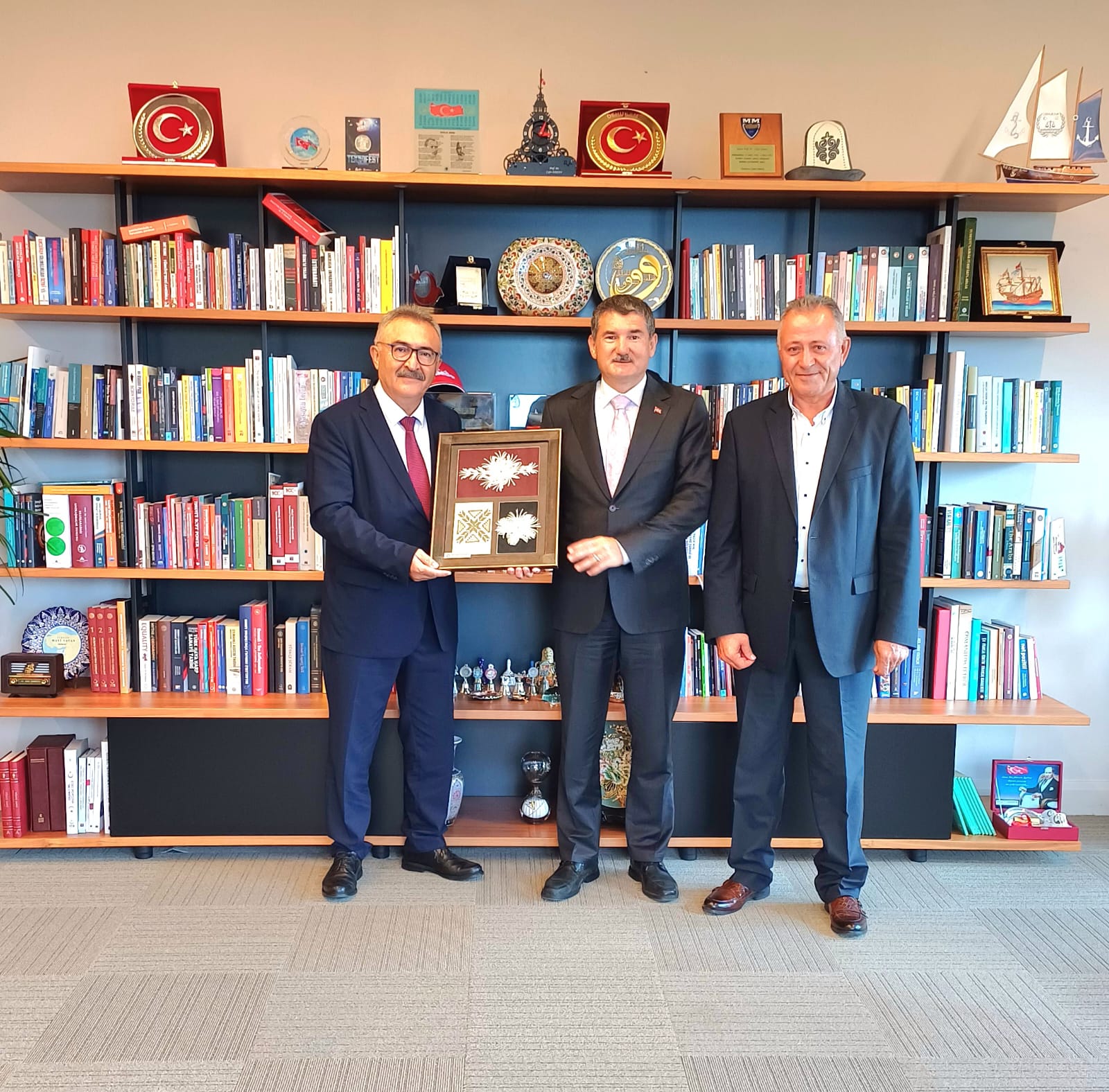 Prof. Dr. Erhan, üniversitenin gelişimini memnuniyetle karşıladığını belirtti. Ziyarette Erhan’a Kıbrıs’a özgü pano takdim edildi.