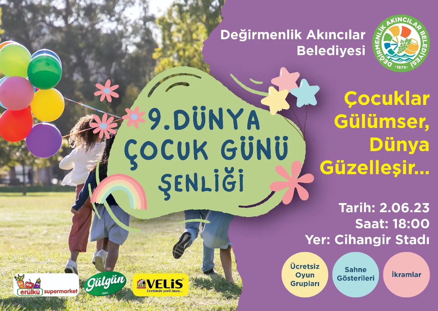 Lefkoşa, 30 Mayıs 23 (TAK): Değirmenlik Akıncılar Belediyesi, 2 Haziran Cuma günü “9. Dünya Çocuk Günü Şenliği” düzenliyor.