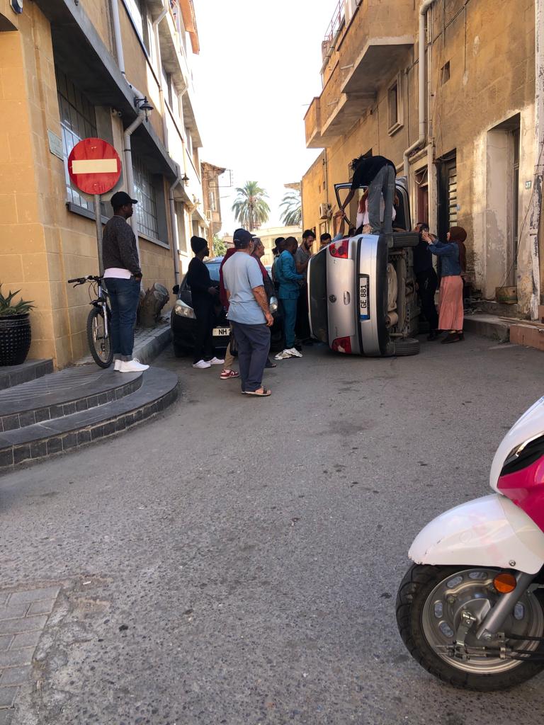 Lefkoşa, 4 Kasım 22 (TAK): Lefkoşa Surlariçi'nde bu sabah 10.00 sıralarında 20 yaşındaki İlayda Nur Anber, yönetimindeki GE 881 plakalı salon araçla seyir halindeyken dikkatsizlik sonucu direksiyon hakimiyetini kaybetti ve kaldırıma çarparak yan devrildi.