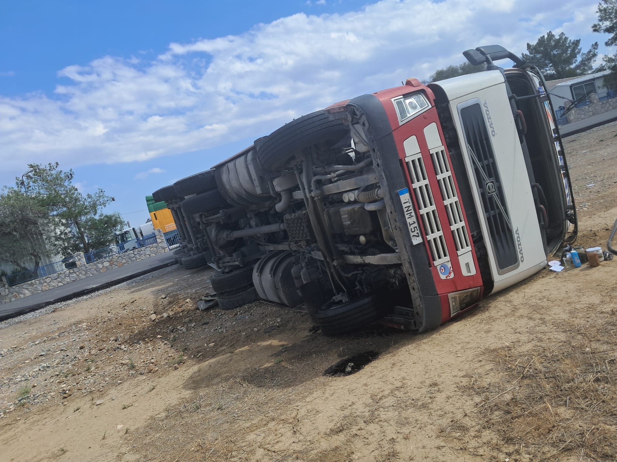 Lefkoşa, 30 Mayıs 25 (TAK): Demirhan'da direksiyon hâkimiyetini kaybeden tır şoförü Erdal Yılmaz (E-52) kaza yaptı.