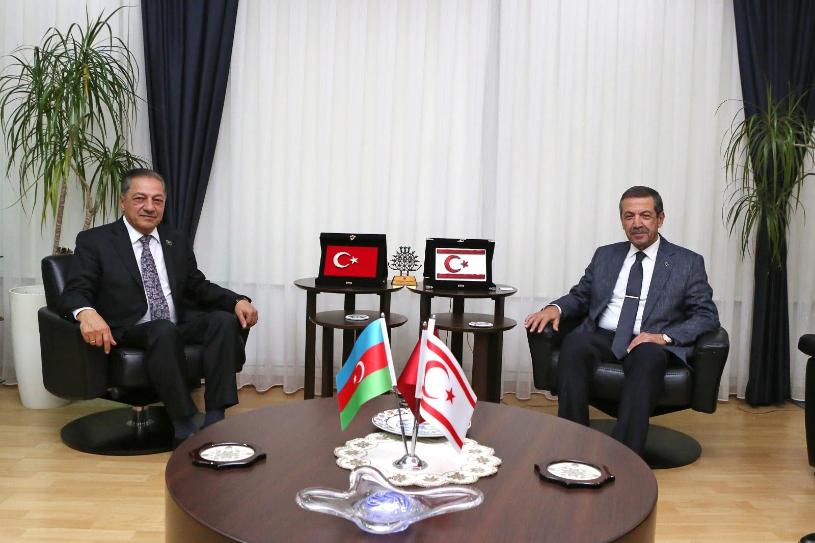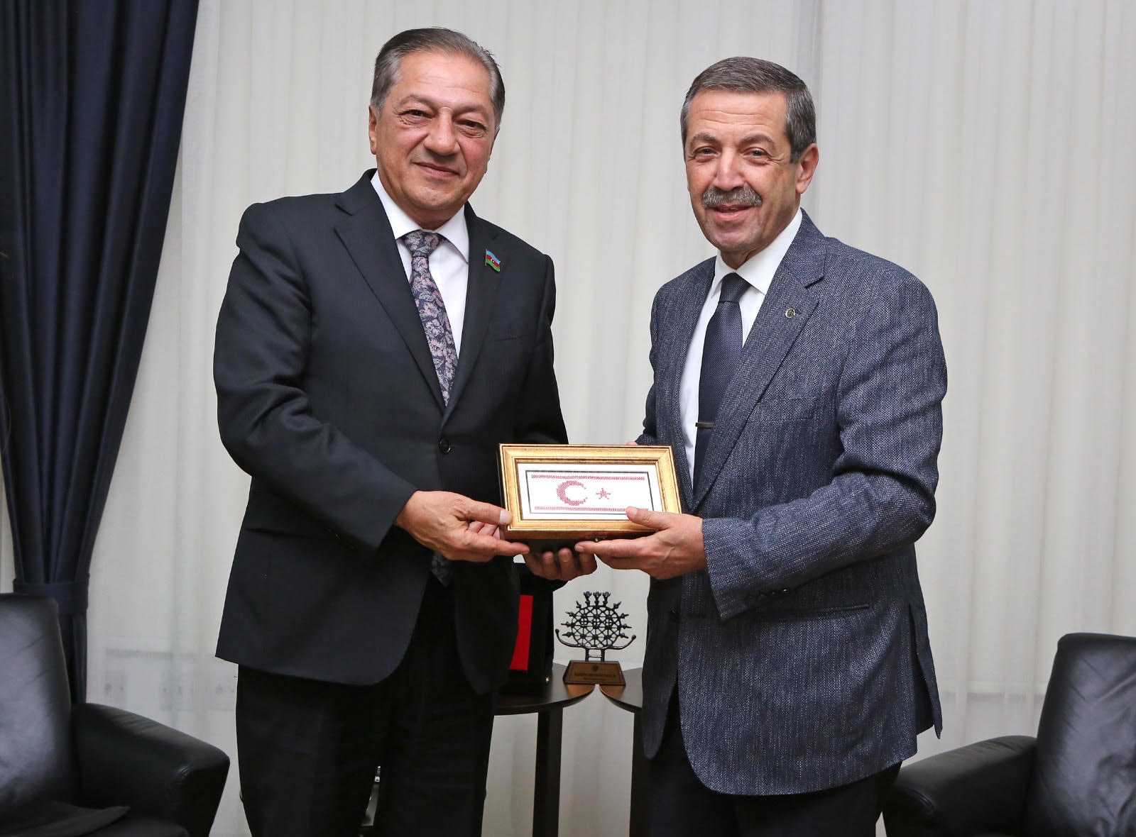 Dışişleri Bakanı Ertuğruloğlu, Azerbaycan Milli Meclisi- KKTC Dostluk Grubu Başkanı Cevanşir Feyziyev ile Tural Ganceliyev’i kabul etti