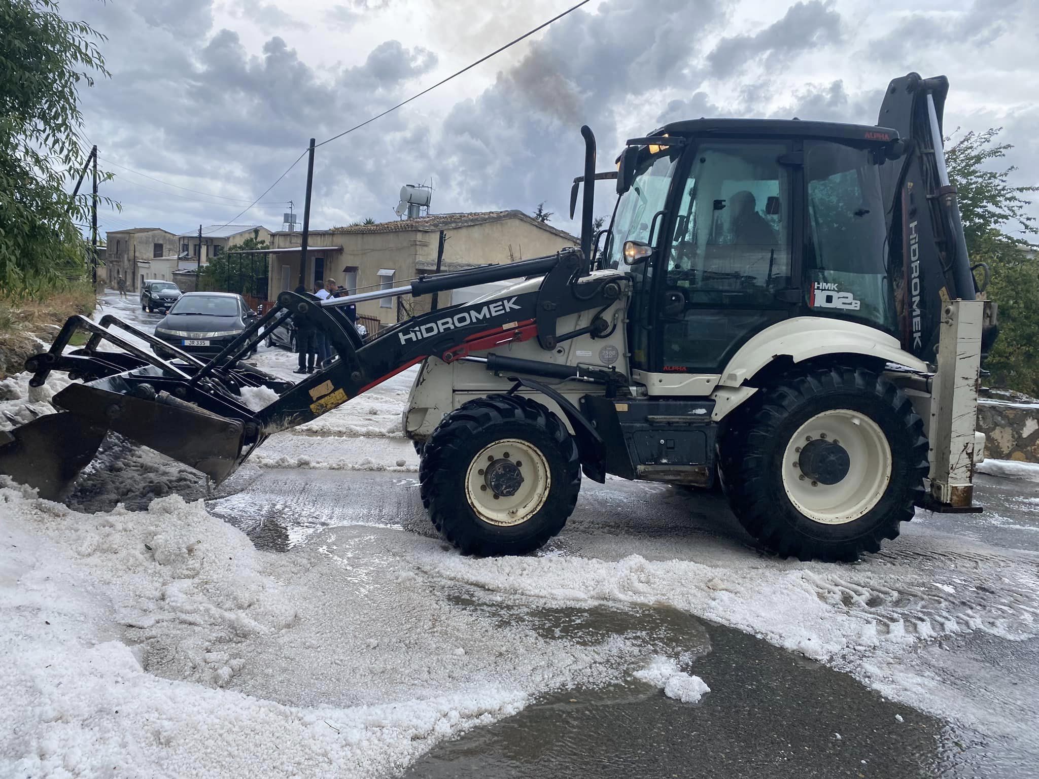 Lefkoşa, 28 Nisan 23 (TAK): Ülke genelinde etkili olan yağışlı hava, Esentepe bölgesinde yoğun dolu yağışına yol açtı.