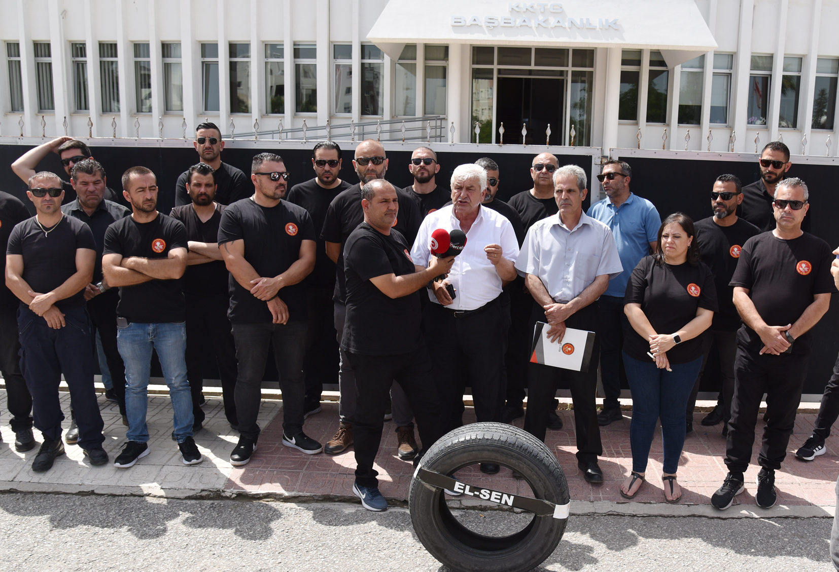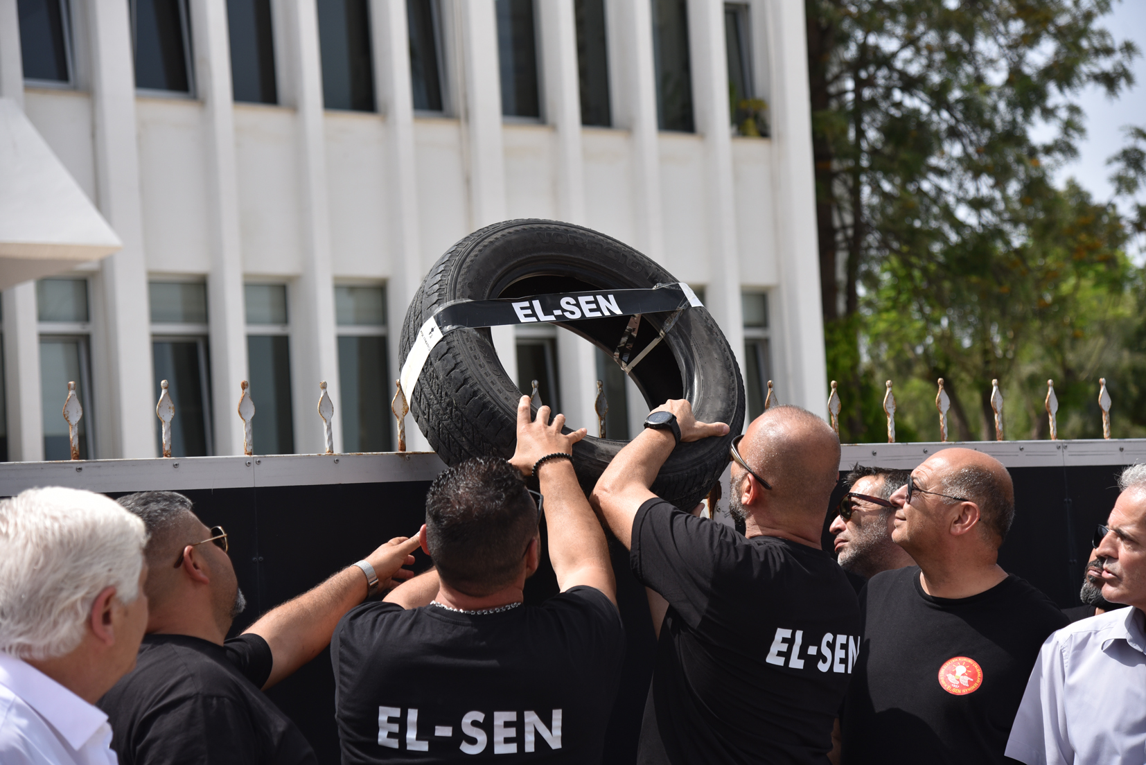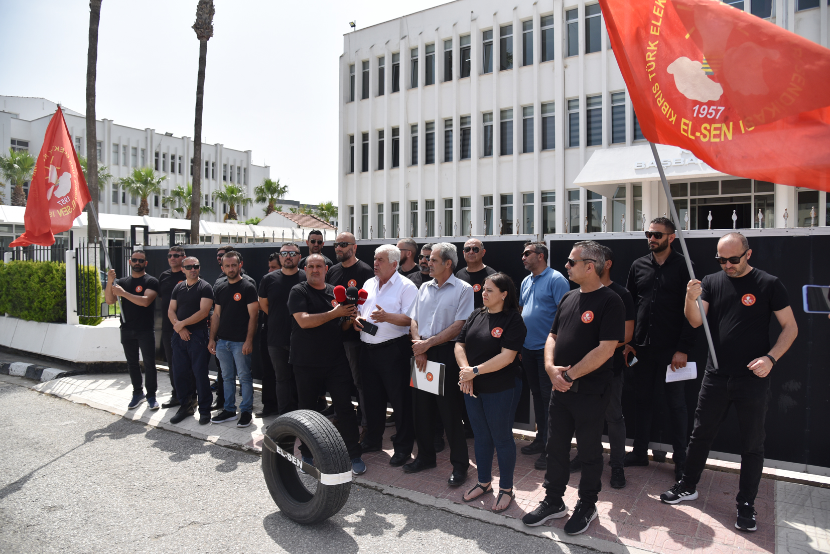 Lefkoşa, 1 Haziran 23 (TAK): Kıbrıs Türk Elektrik Kurumu Çalışanları Sendikası (EL-SEN), bugün yaptığı eylem çerçevesinde Başbakanlık önüne patlak araba lastiği bıraktı.