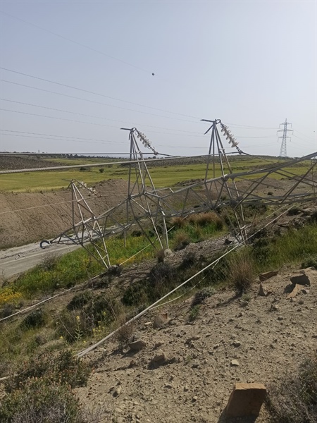 Lefkoşa, 2 Nisan 22 (T.A.K.): Lefkoşa kuzey çevre yolu üzerinde, yüksek gerilim hatlarını taşıyan metal direğin eğilmesi sonucu, elektrik telleri o esnada yolda seyir halindeki Kudret Ülken yönetimindeki aracın üzerine düştü. Araçta maddi hasar meydana gelirken, herhangi bir yaralanma olmadı.
