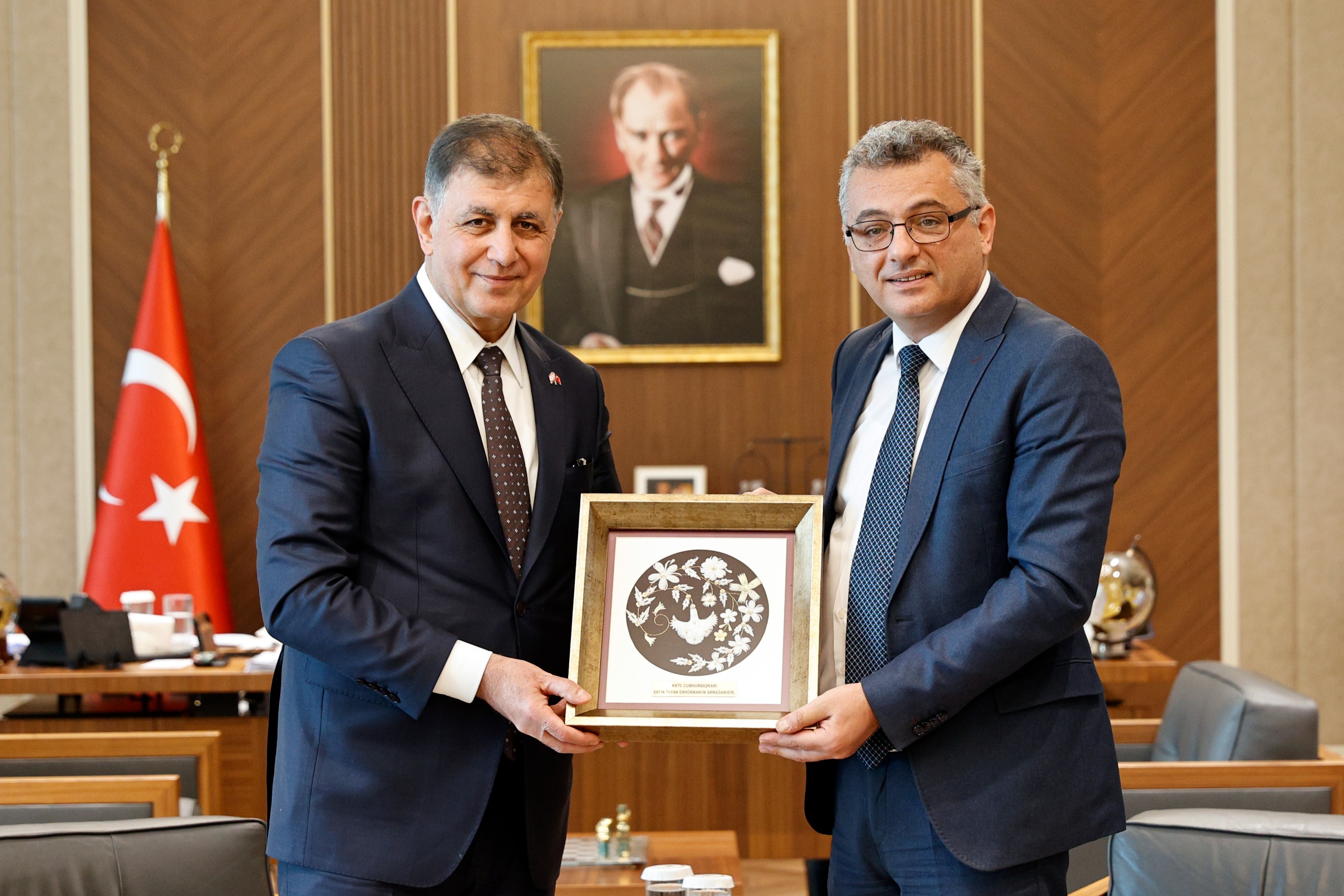 Lefkoşa, 26 Mart 26 (TAK): Cumhurbaşkanı Tufan Erhürman, İzmir Büyükşehir Belediye Başkanı Cemil Tugay’ı ve beraberindeki Kıbrıs Gazilerini kabul ederek görüştü.